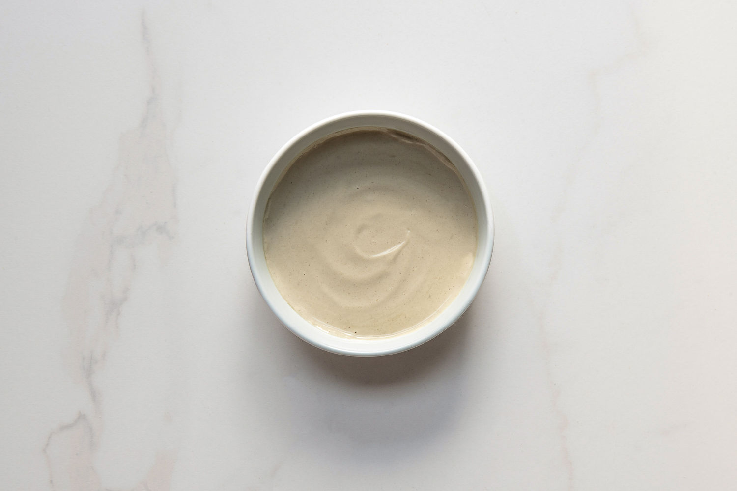 To make the tahini sauce place the tahini and remaining lemon juice into a medium bowl and whisk to combine. It will seize slightly, add water and whisk until smooth and pourable. Add salt to taste.
