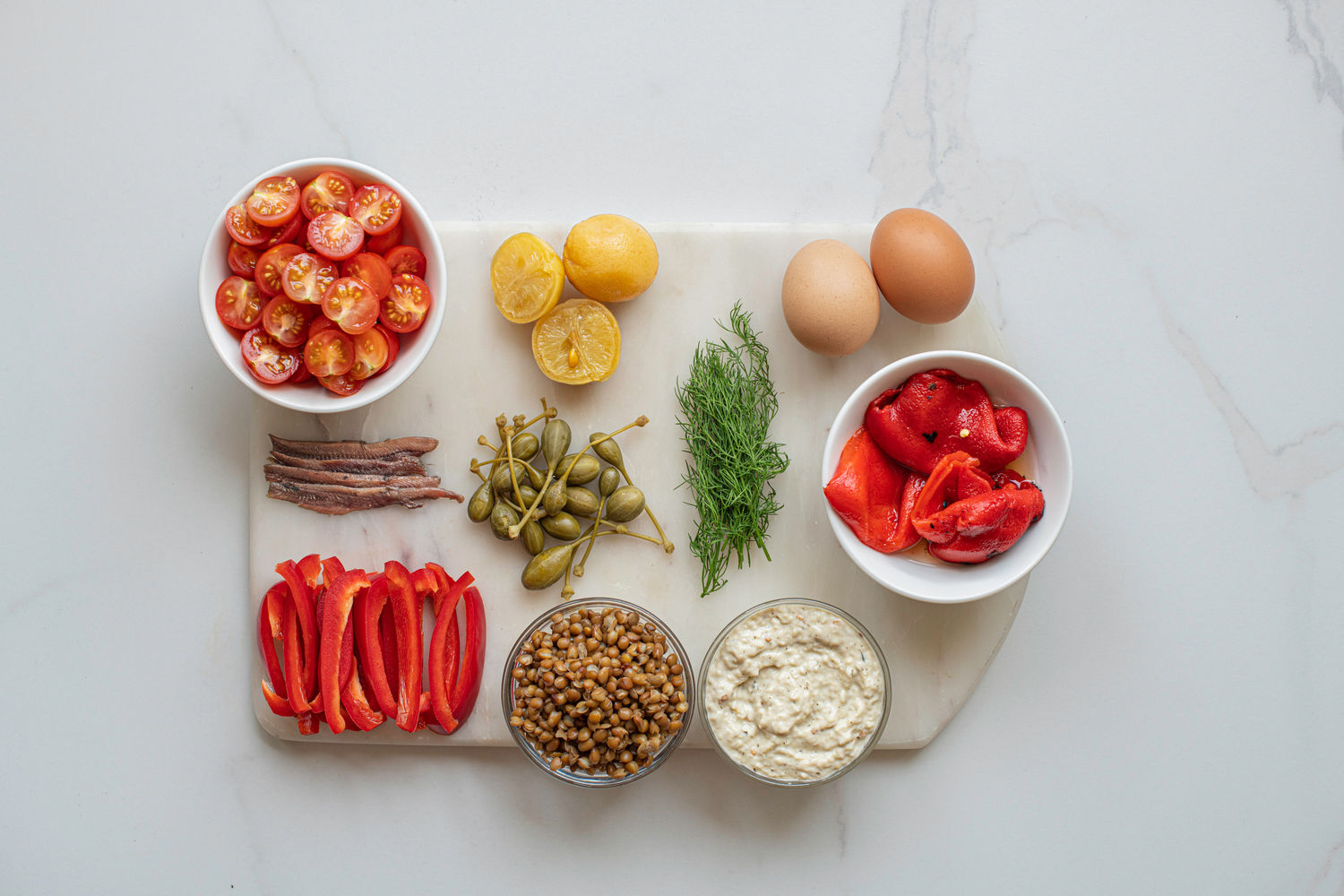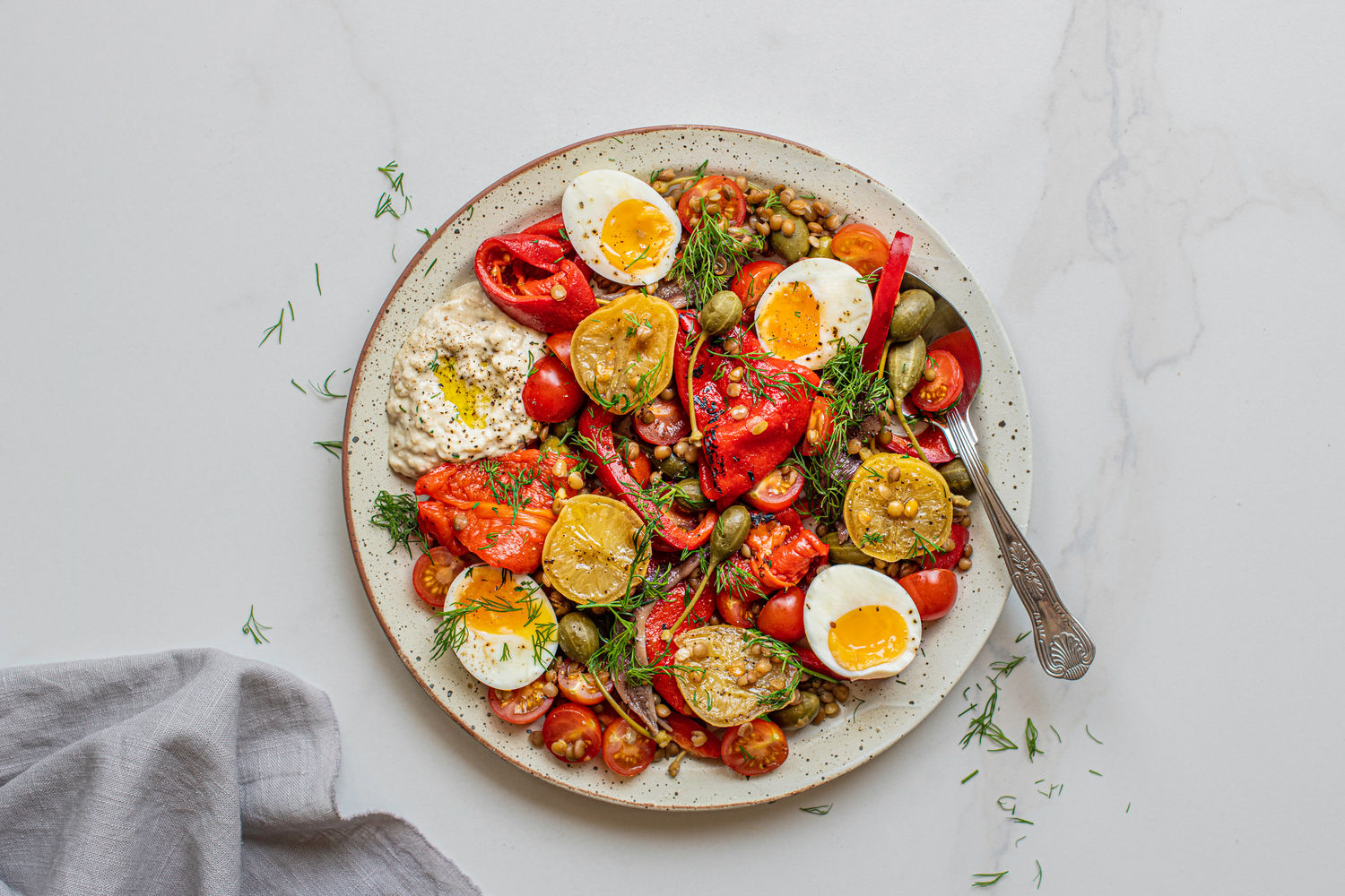 Antipasti Salad with Roasted Peppers, Lemon and Puy Lentils