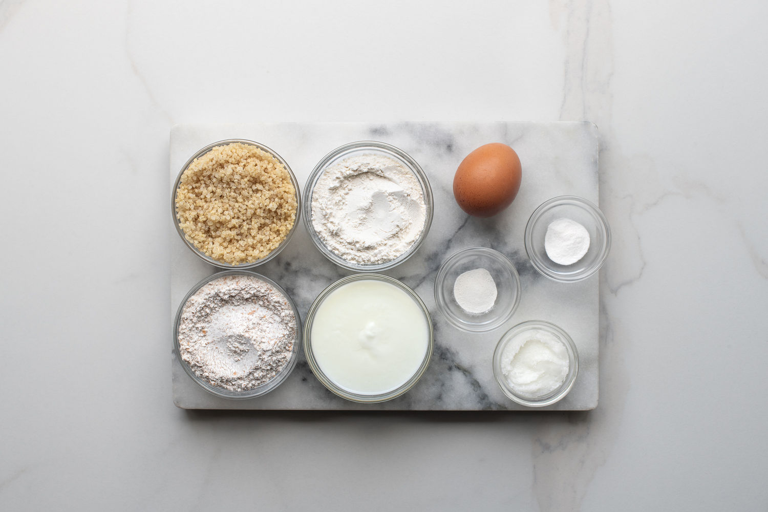 We love pancakes but find they don’t offer much in the way of substance. Eat a stack for breakfast and you’ll be hungry not long afterwards. Enter Any...-Grain Wholemeal Pancakes. Stir any (yes any!) whole grain through the batter to add flavour, texture and nutrition. Quinoa makes a particularly good addition, its smaller granules allow the pancakes to maintain a light and fluffy texture, and it’s protein content means these will keep you going for longer than traditional pancakes. Other grains that work well include bulgur, freekeh and barley. If you use a large grain give them a rough chop with a knife to achieve a finer texture, which yields a fluffy pancake.