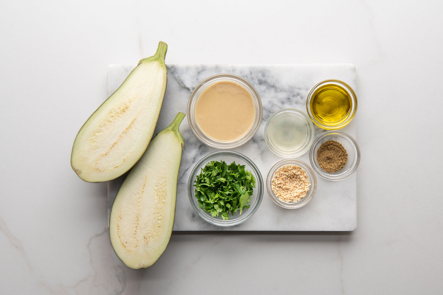 This creamy, savoury dip tastes best at the height of summer when aubergines are in season. Though classic baba ganoush is grilled over an open flame ...This creamy, savoury dip tastes best at the height of summer when aubergines are in season. Though classic baba ganoush is grilled over an open flame for a smoky effect, here we have chosen to oven bake for ease. It’s also easier to scoop out rather than peel off the flesh, leaving you with more time to enjoy out of the kitchen.