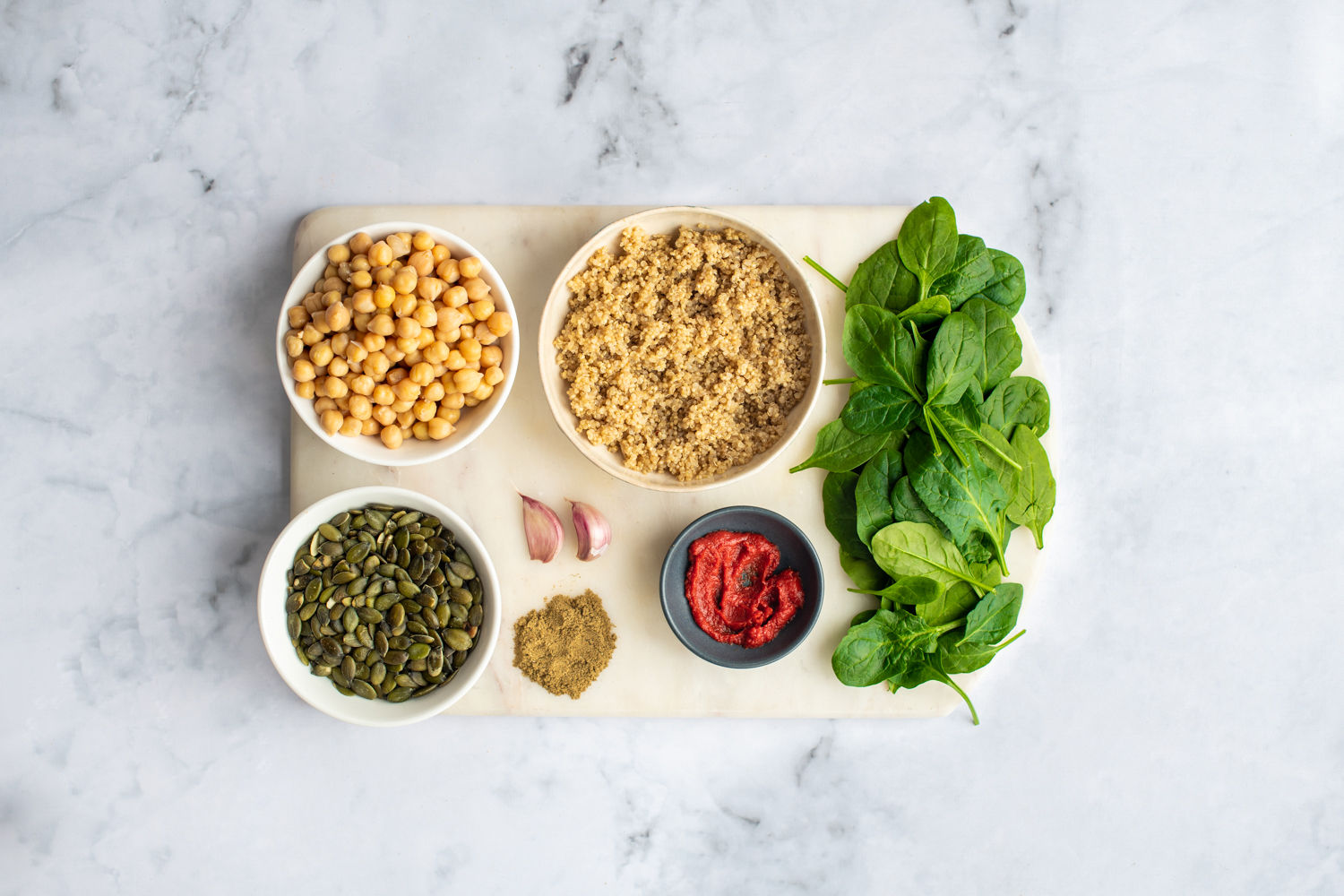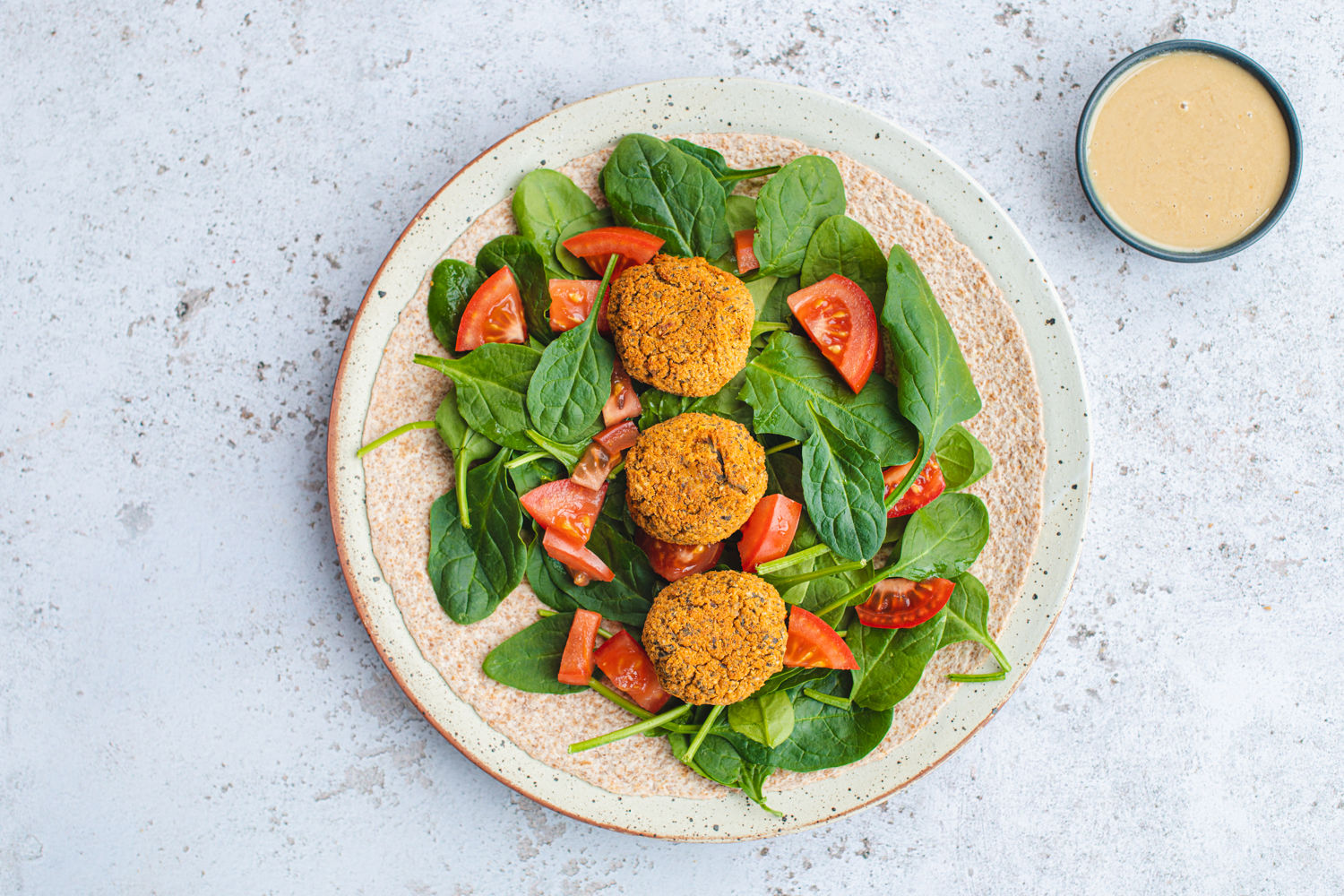 Serve with the fresh spinach, tomatoes, tahini, and tortilla wraps, if desired.