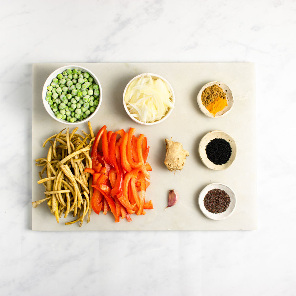 Crumbled Tempeh Stir-fry with Mushrooms, Green Beans and Sticky Tamarind Sauce