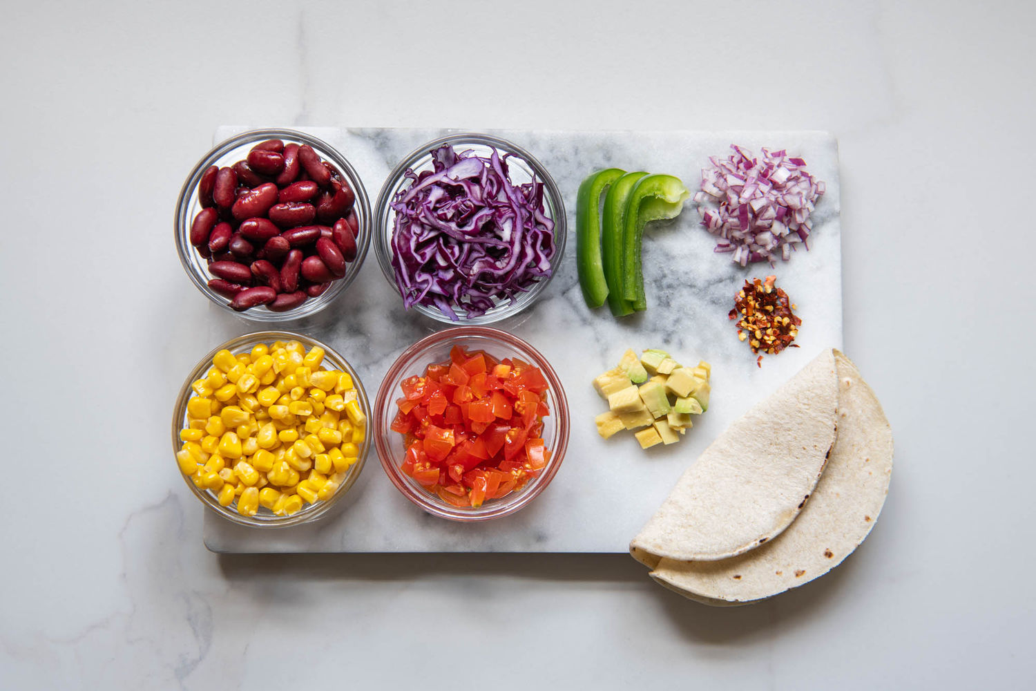 Bean and Corn Tacos with Avocado Creama and Salsa