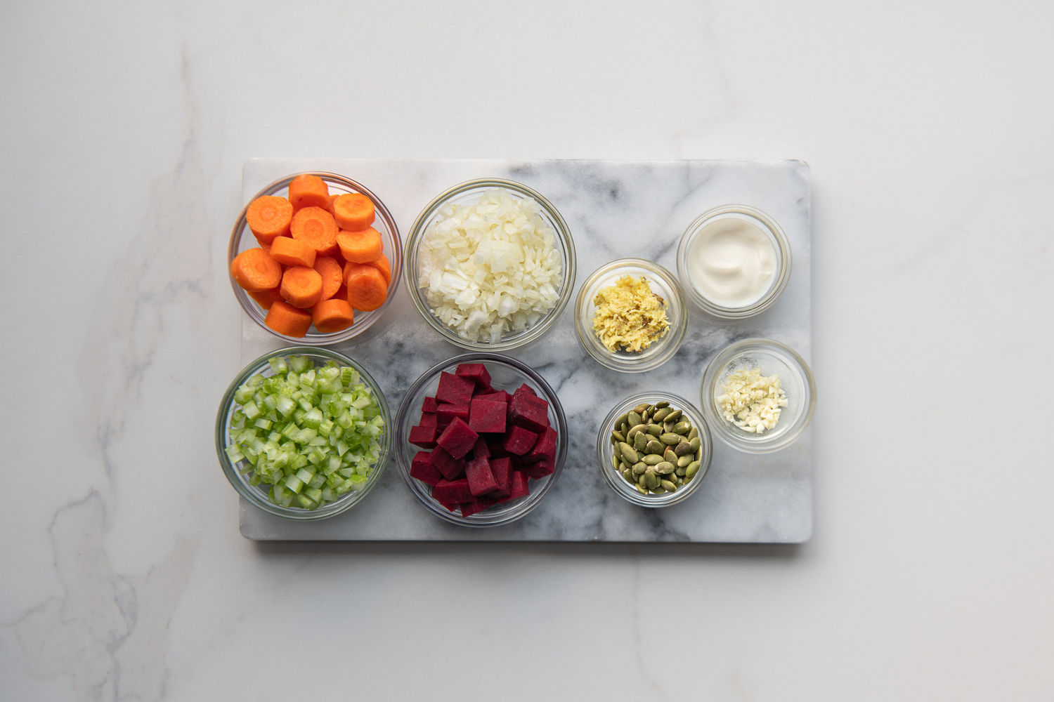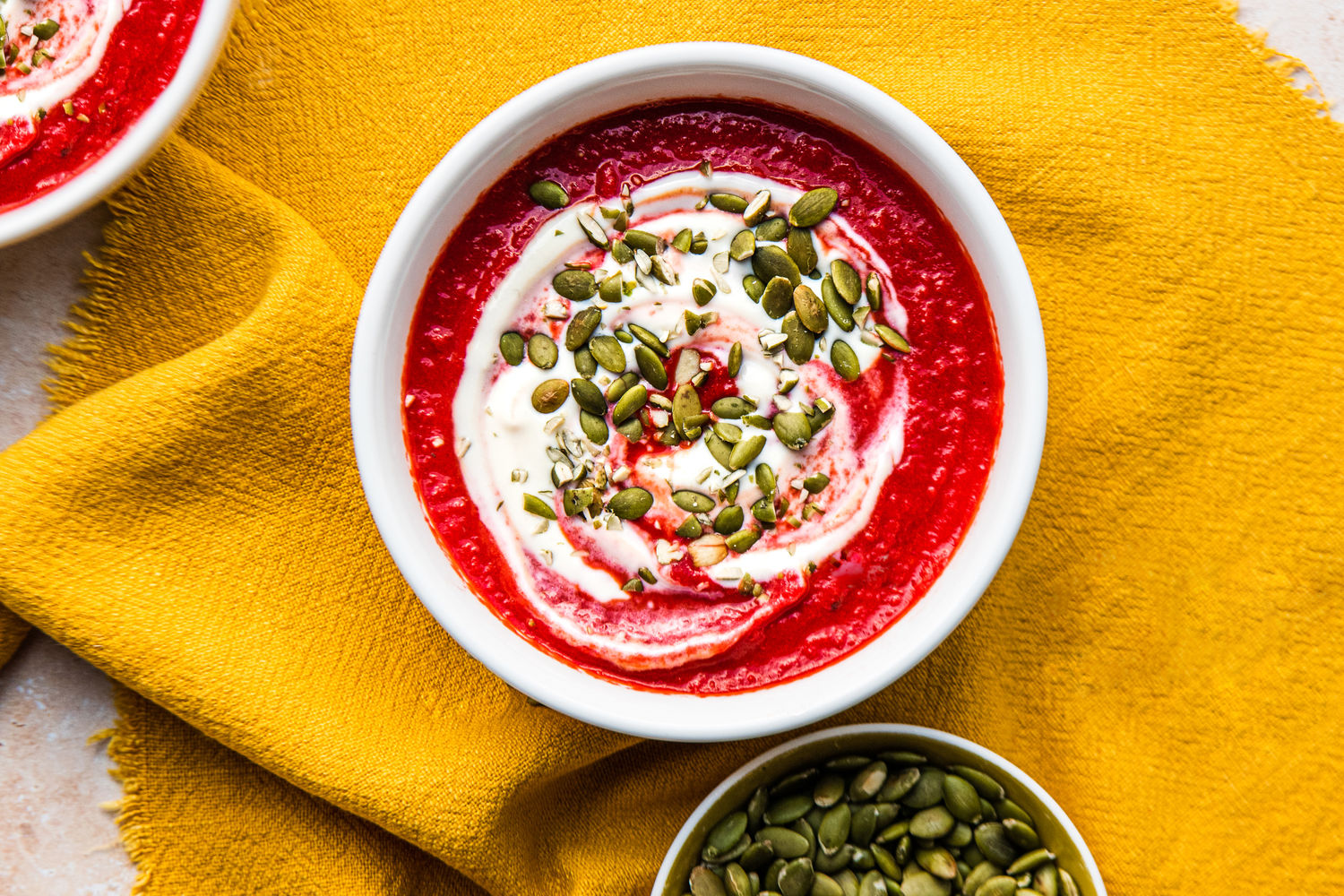 Packed full of earthy beetroot, sweet apple and zingy ginger - this vibrant and warming soup will make you feel like you’re glowing. Beetroot's distin...ctive red colour comes from betalain, a phytonutrient that has been shown to reduce inflammation. Read more Packed full of earthy beetroot, sweet apple and zingy ginger - this vibrant and warming soup will make you feel like you’re glowing. Beetroot's distinctive red colour comes from betalain, a phytonutrient that has been shown to reduce inflammation.