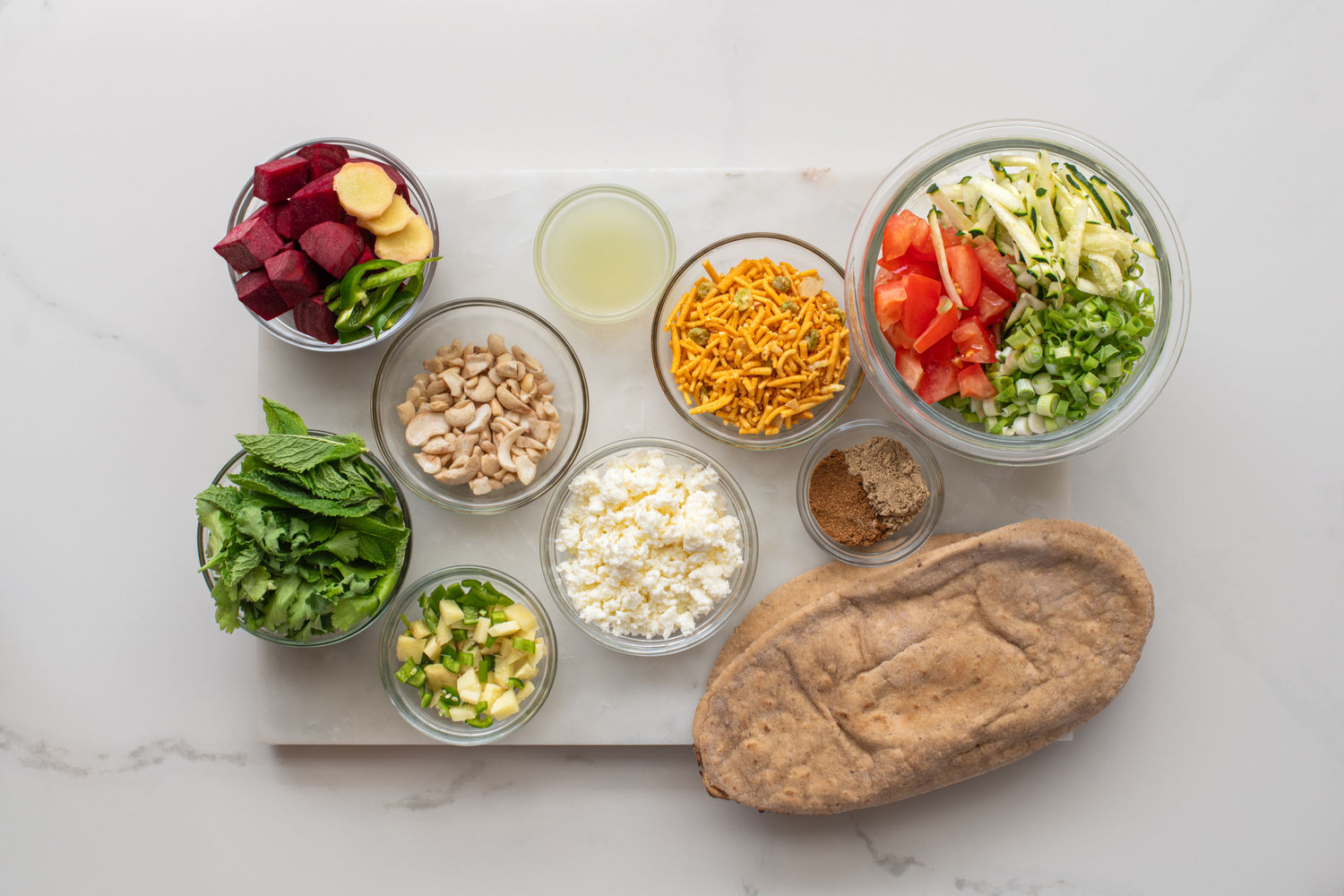 This colourful sandwich was introduced to us by our medical student intern Rajvi Patel. It uses two punchy chutneys - beetroot and coriander - and a f...This colourful sandwich was introduced to us by our medical student intern Rajvi Patel. It uses two punchy chutneys - beetroot and coriander - and a filling made from crumbled paneer. An optional sprinkle of sev (fried chickpea noodles) adds a satisfying crunch. If you can't find sev, a sprinkle of mixed seeds makes a great alternative. Read more This colourful sandwich was introduced to us by our medical student intern Rajvi Patel. It uses two punchy chutneys - beetroot and coriander - and a filling made from crumbled paneer. An optional sprinkle of sev (fried chickpea noodles) adds a satisfying crunch. If you can't find sev, a sprinkle of mixed seeds makes a great alternative. This colourful sandwich was introduced to us by our medical student intern Rajvi Patel. It uses two punchy chutneys - beetroot and coriander - and a filling made from crumbled paneer. An optional sprinkle of sev (fried chickpea noodles) adds a satisfying crunch. If you can't find sev, a sprinkle of mixed seeds makes a great alternative.
