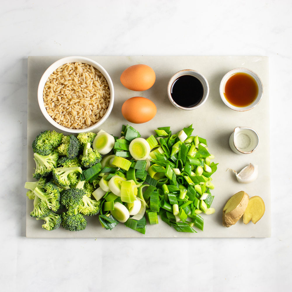 A typical egg fried rice dish with added brassica vegetables and high fibre leeks to improve it's nutrient value without losing the flavour of this qu...ick and easy Asian style dish. We are using pre-cooked for this dish, it's a great way of using up leftovers! Read more A typical egg fried rice dish with added brassica vegetables and high fibre leeks to improve it's nutrient value without losing the flavour of this quick and easy Asian style dish. We are using pre-cooked for this dish, it's a great way of using up leftovers!