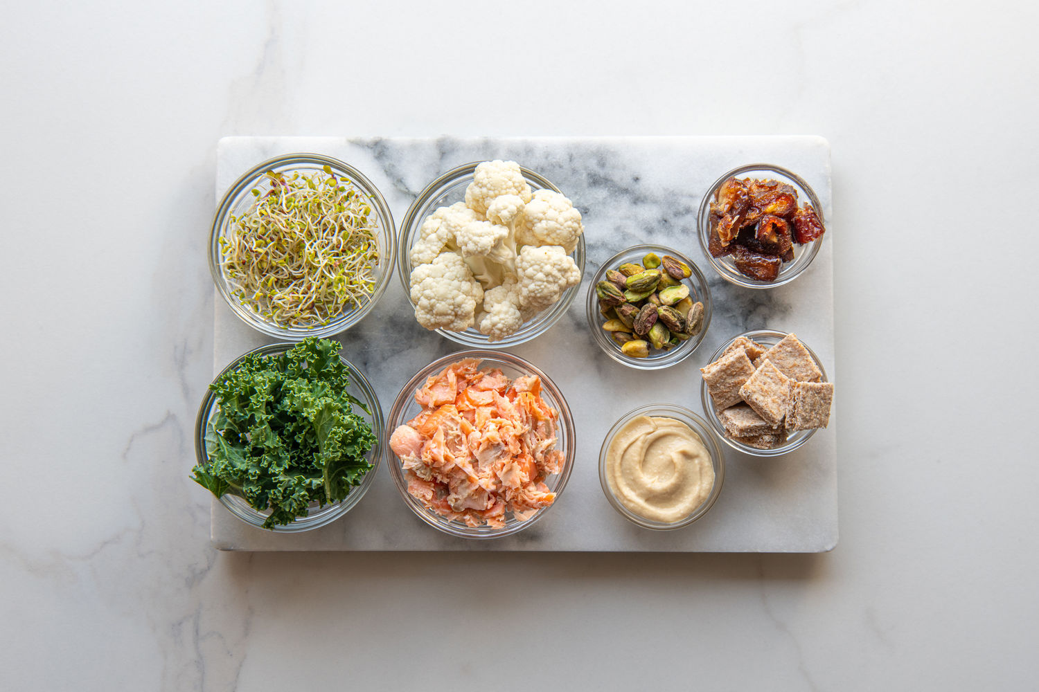 Cauliflower, Date, Walnut and Hot Smoked Salmon Diversity Bowl