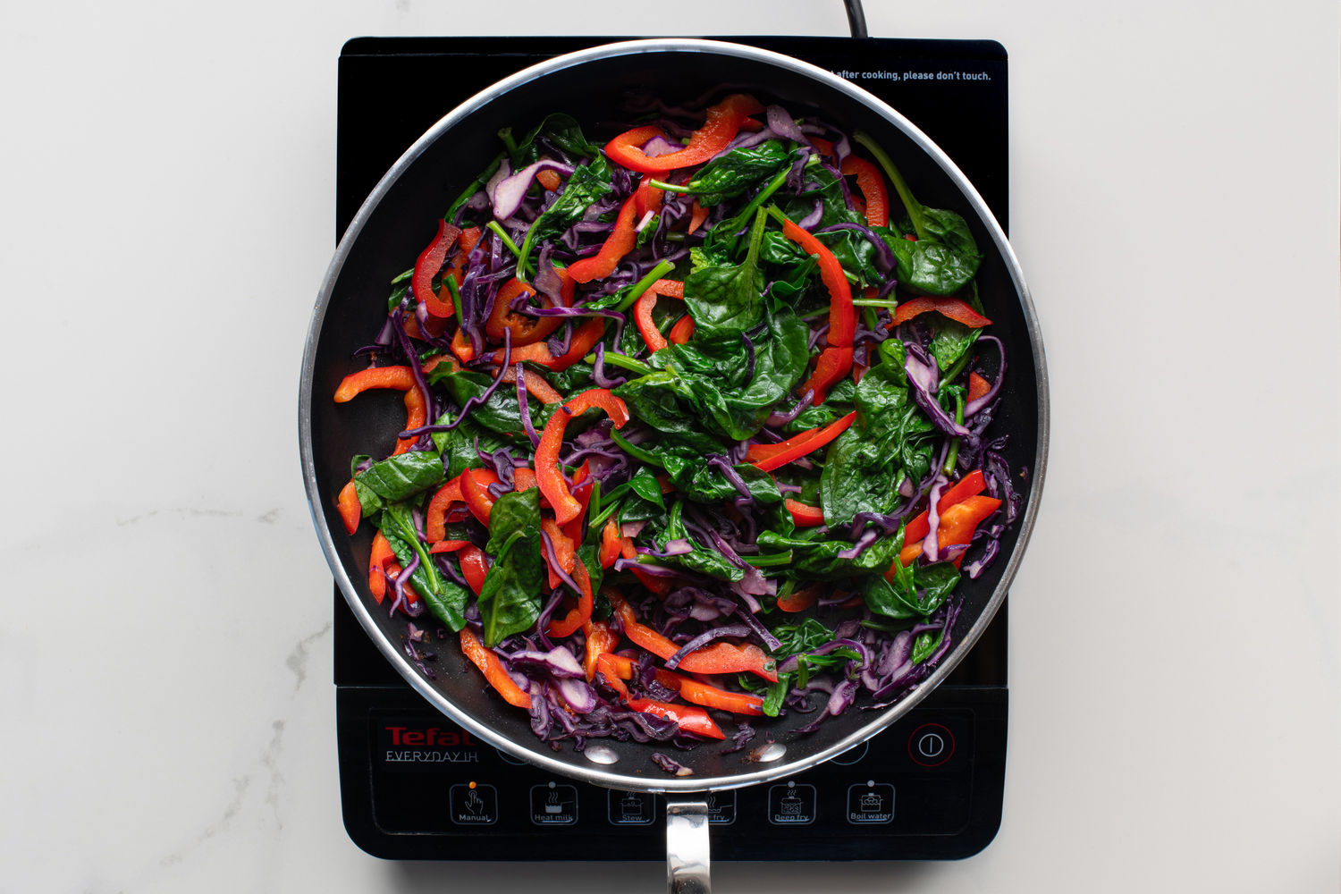 Give the pan a quick wipe and return to the heat. Add the remaining olive oil and the vegetables with a light sprinkle of salt and pepper. Cook for 4-5 minutes, stirring often, until tender.