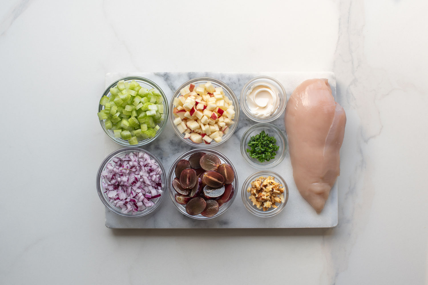 A twist on the classic Waldorf salad, this protein-filled bowl makes a great light lunch. Poaching chicken yields a perfectly moist result each time, ...but you could also use leftover roasted chicken in this recipe. Read more A twist on the classic Waldorf salad, this protein-filled bowl makes a great light lunch. Poaching chicken yields a perfectly moist result each time, but you could also use leftover roasted chicken in this recipe.