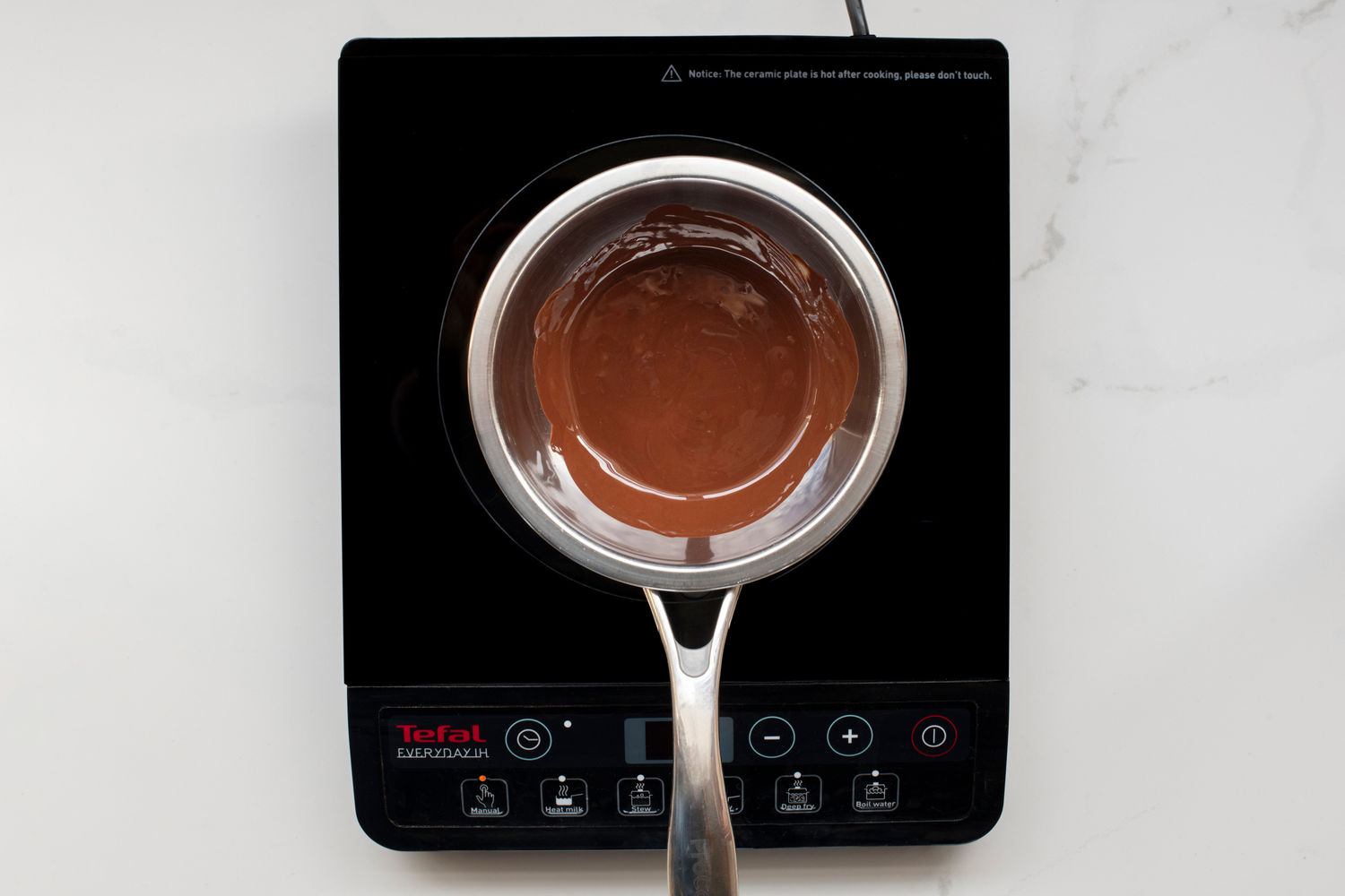 While the cookies are cooling, melt the chocolate in a small bowl over a saucepan of simmering water.