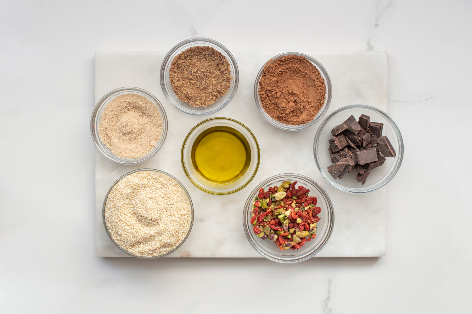 We first created these as a healthy festive treat, with pistachios and goji berries acting as naturally colourful Christmas sprinkles, but they taste ...great at any time of year! Soft, rich, and fudgy, they’re best made with high-quality cacao powder for maximum flavour - we like the brand Aduna. Read more We first created these as a healthy festive treat, with pistachios and goji berries acting as naturally colourful Christmas sprinkles, but they taste great at any time of year! Soft, rich, and fudgy, they’re best made with high-quality cacao powder for maximum flavour - we like the brand Aduna.