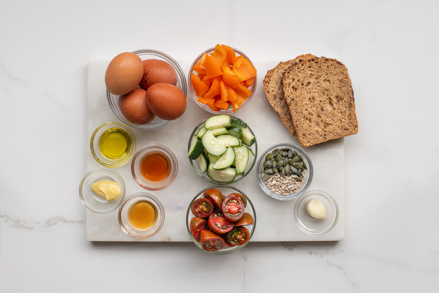 This simple salad features vegetables, boiled eggs and croutons chopped into uniform-sized pieces that make it spoonable and easy to eat. It makes a g...reat lunch or even breakfast. If eaten fresh the toaster croutons are crunchy, but if you want to pack it for work they are also quite nice when they are soft and have absorbed the zingy vinaigrette. Read more This simple salad features vegetables, boiled eggs and croutons chopped into uniform-sized pieces that make it spoonable and easy to eat. It makes a great lunch or even breakfast. If eaten fresh the toaster croutons are crunchy, but if you want to pack it for work they are also quite nice when they are soft and have absorbed the zingy vinaigrette.