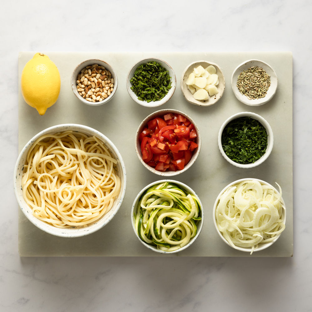 Courgette, Fennel & Fresh Tomato Pasta Salad with Toasted Pine Nuts
