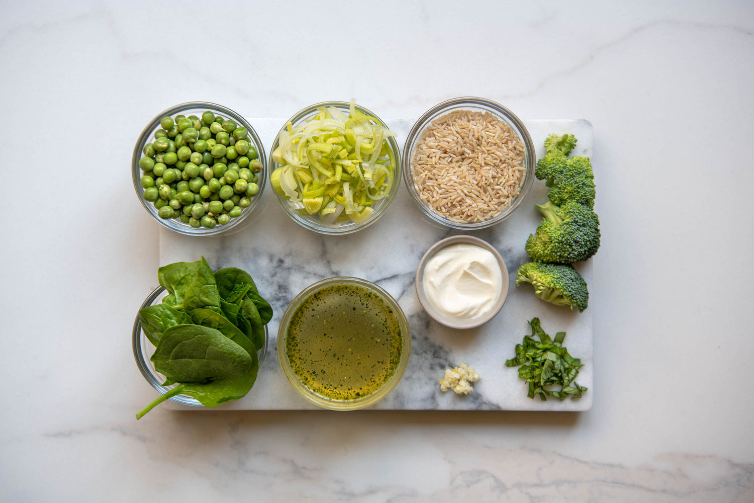 One Pot Creamy Broccoli, Pea & Leek Rice