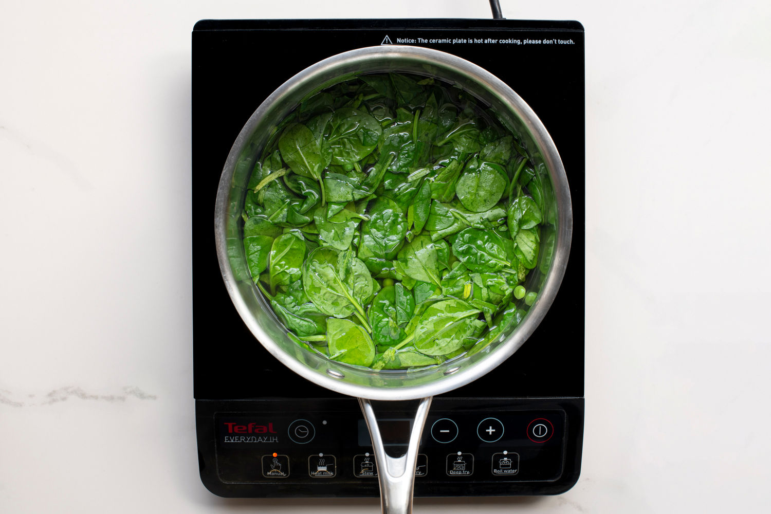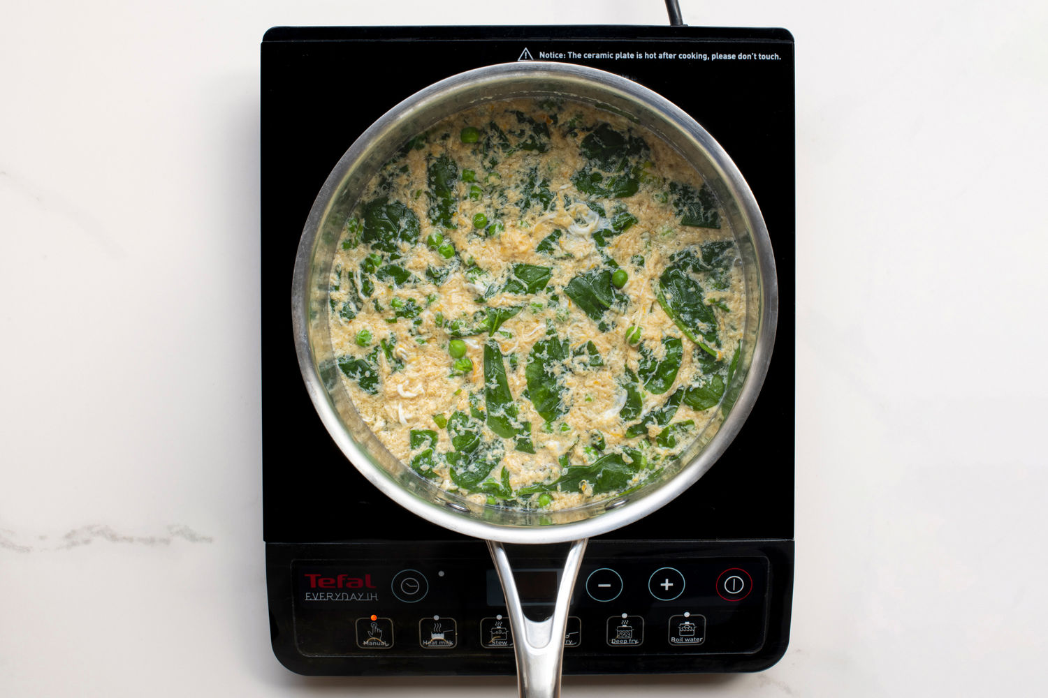 Add the spinach and peas, cook for a further 2-3 minutes, just until the spinach has wilted.