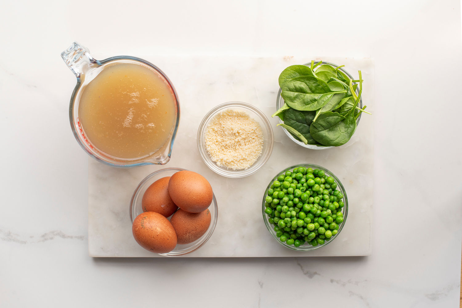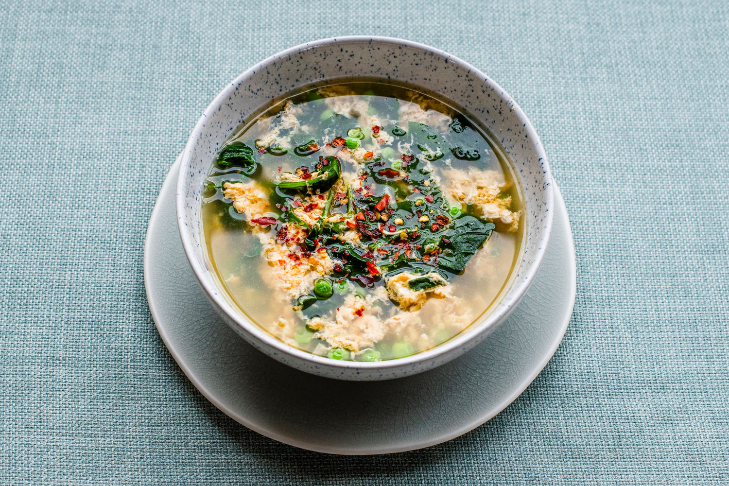 Egg Drop Soup with Parmesan, Spinach, and Peas