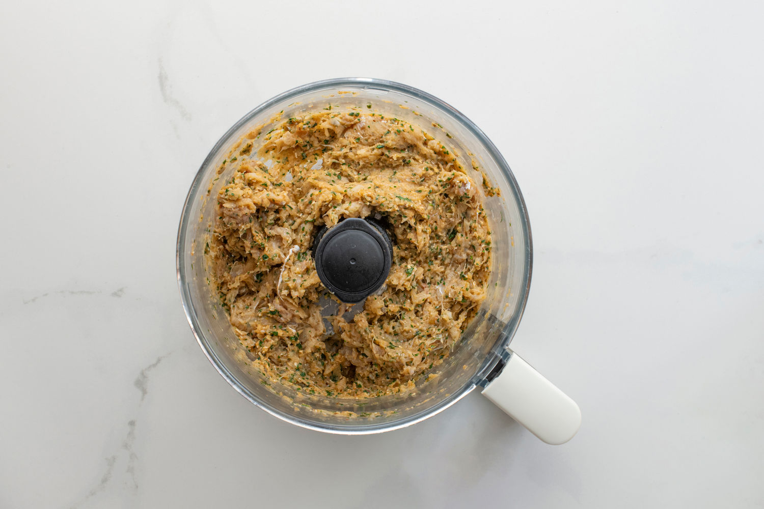 Then add the fish and pulse again until broken down with some chunks remaining. The mixture should hold together when you squeeze it.