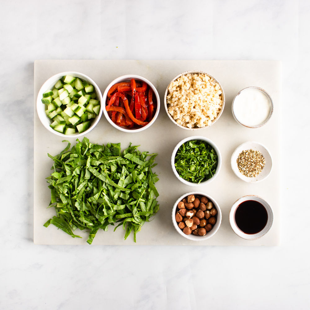 Crunchy hazelnuts, herby za'atar and sweet roasted peppers make this a beautifully balanced and super nutritious salad. It's a cinch to make. Crunchy hazelnuts, herby za'atar and sweet roasted peppers make this a beautifully balanced and super nutritious salad. It's a cinch to make.
