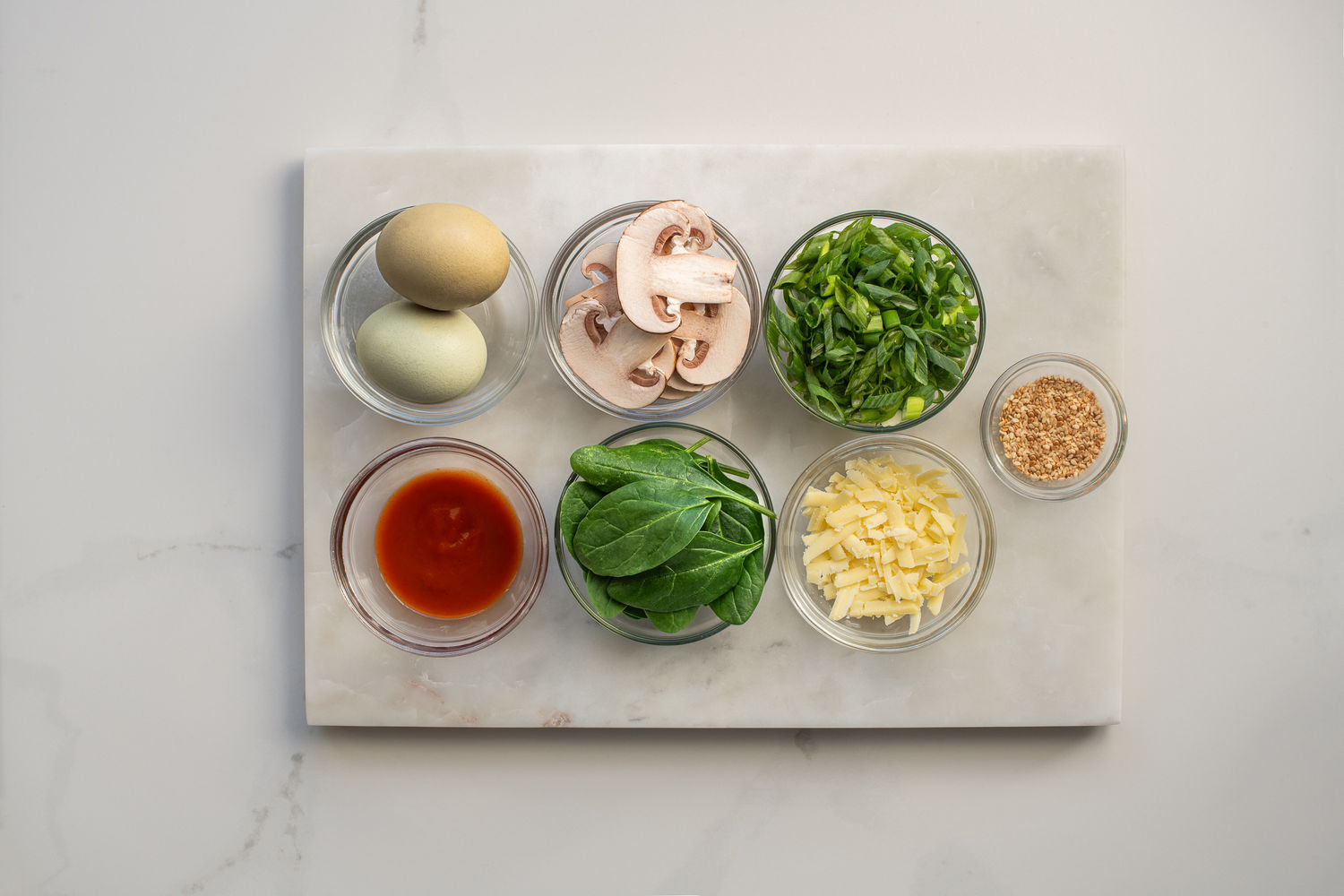 Gochujang, Mushroom, Spinach and Cheddar Omelette
