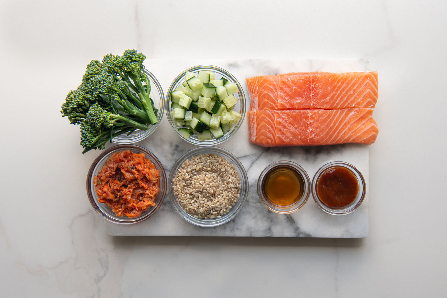 Gochujang Salmon Bowls with Sesame Roasted Broccoli and Kimchi