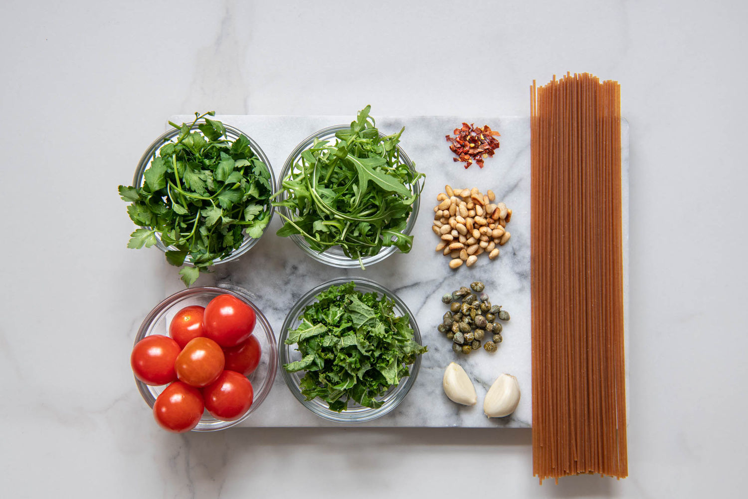 A vibrant pasta dish with delicious rich green and allium flavours, perfect for a show stopping quick and healthy meal. A vibrant pasta dish with delicious rich green and allium flavours, perfect for a show stopping quick and healthy meal.