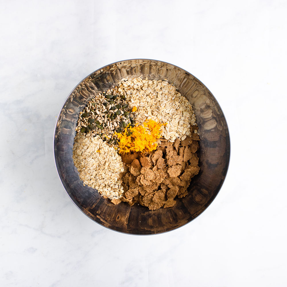 Protein: 18g; Calories: 529kcal; Total Fat: 20g; Carbs: 74g; Sugars: 20g; Fibre: 13g; Calcium: 108mg (8%); Iron: 8mg (44%); Magnesium: 199mg (47%); Potassium: 657mg (14%); Sodium: 157mg (7%); Vitamin B1: 1mg (83%); Vitamin B12: 1mcg (42%); Vitamin D: 2.1mcg (11%); Vitamin E: 5.1mg (34%); Vitamin B9: 181mcg (45%); Vitamin A: 58mcg (6%); Vitamin C: 16mg (18%); Zinc: 4.1mg (37%); Vitamin K: 3mcg (3%); Copper: 0.7mg (78%); Vitamin B2: 0.8mg (62%); Vitamin B3: 6.5mg (41%); Vitamin B6: 0.6mg (35%); Phosphorus: 542mg (43%)