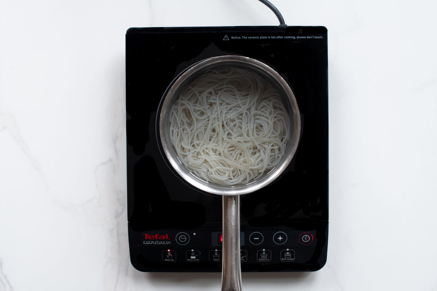 Brussels Sprout Stir-fry with Chilli Peanut Sauce and Konjac Noodles