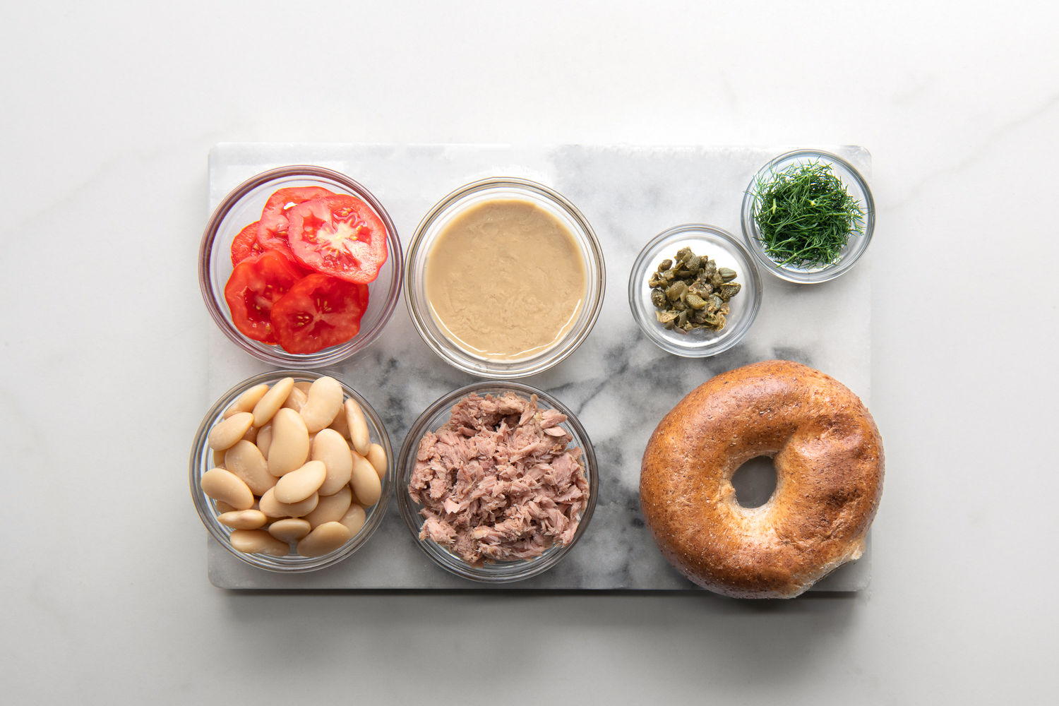 Lemony Tuna and Butter Bean Hummus Bagels