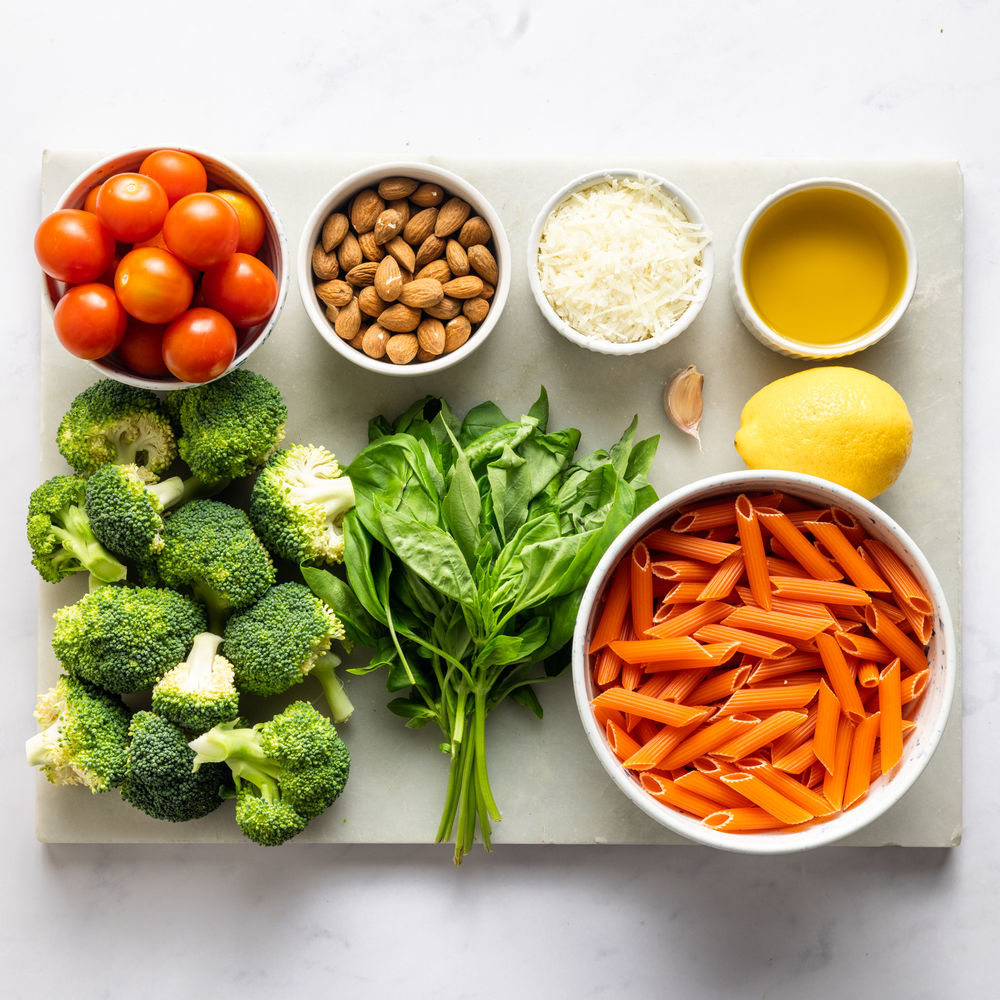 Lentil Pasta with Broccoli & Almond Pesto