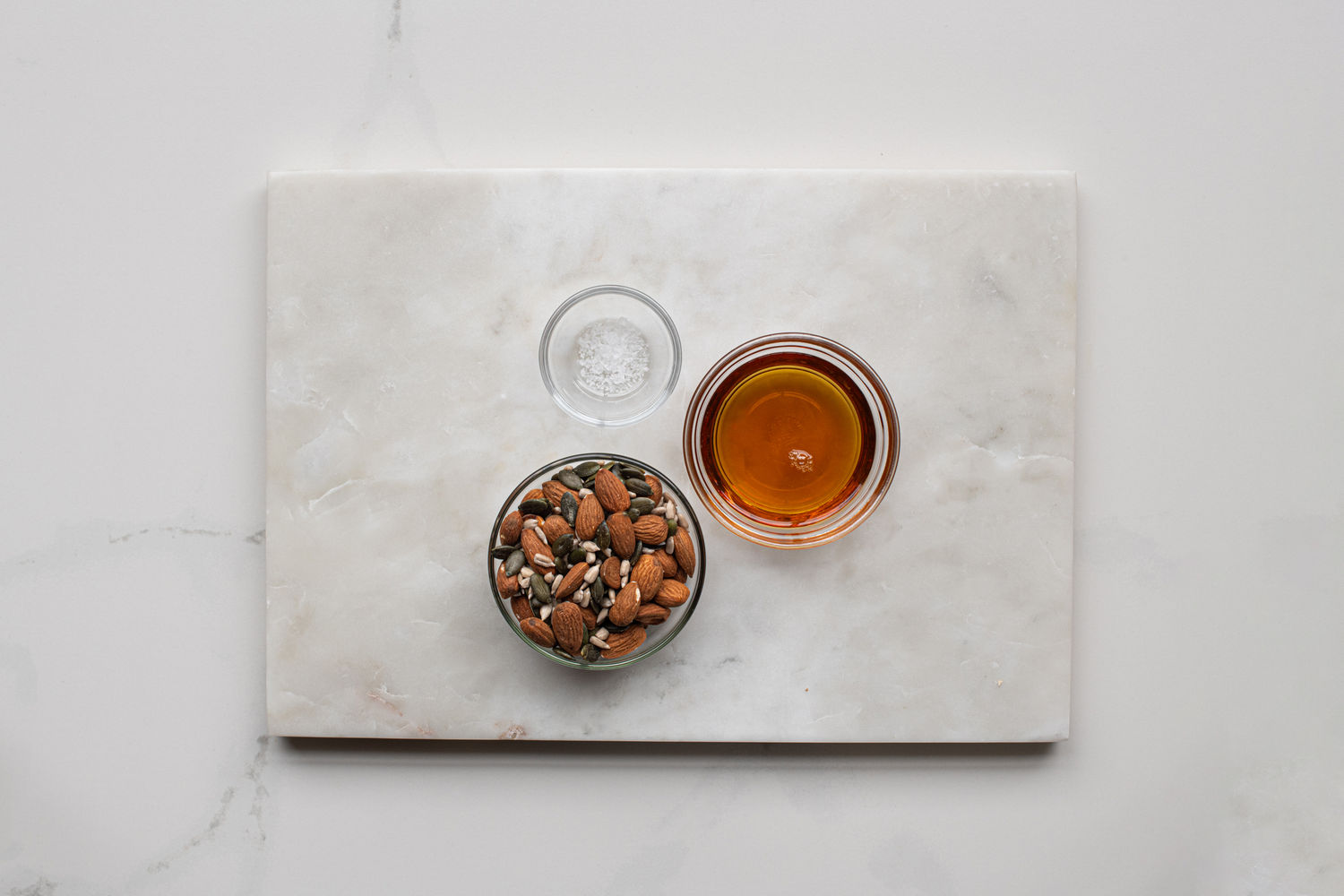 These easy 5-ingredient treats were inspired by KIND bars. Enjoy them as a sweet treat with a cup of tea or pack some for a long walk. They can be cus...tomised to suit your taste and pantry - use any combination of nuts and seeds you like. Read more These easy 5-ingredient treats were inspired by KIND bars. Enjoy them as a sweet treat with a cup of tea or pack some for a long walk. They can be customised to suit your taste and pantry - use any combination of nuts and seeds you like.