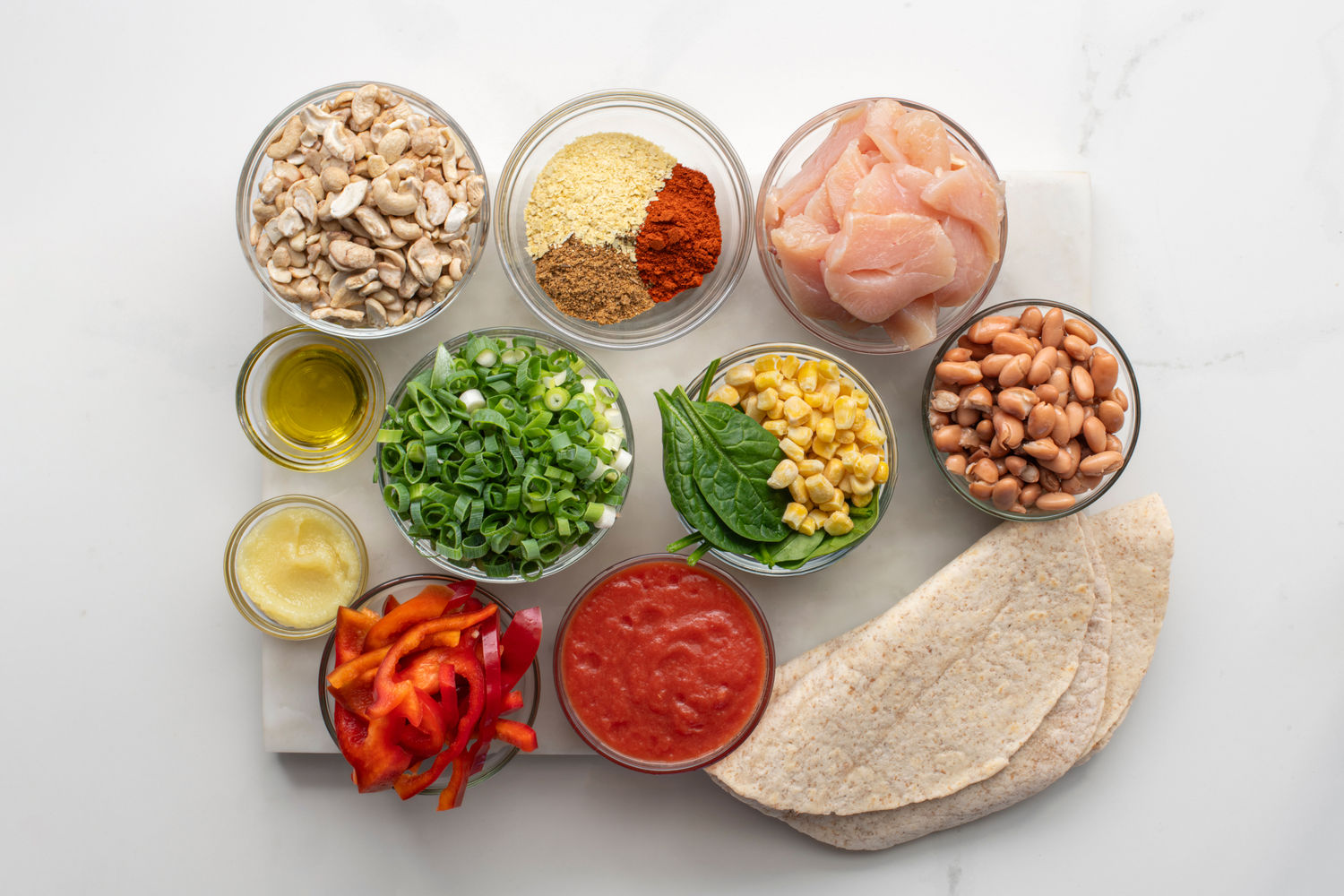 A fuss-free, flavour-packed meal. With tender strips of spiced chicken (or tofu for a plant-based twist), hearty beans, and a smoky tomato sauce, the...y come together in one pan for minimal cleanup and maximum taste. The magic touch is a luscious, creamy cashew sauce that bakes into the dish, adding richness without dairy. Read more A fuss-free, flavour-packed meal. With tender strips of spiced chicken (or tofu for a plant-based twist), hearty beans, and a smoky tomato sauce, they come together in one pan for minimal cleanup and maximum taste. The magic touch is a luscious, creamy cashew sauce that bakes into the dish, adding richness without dairy.