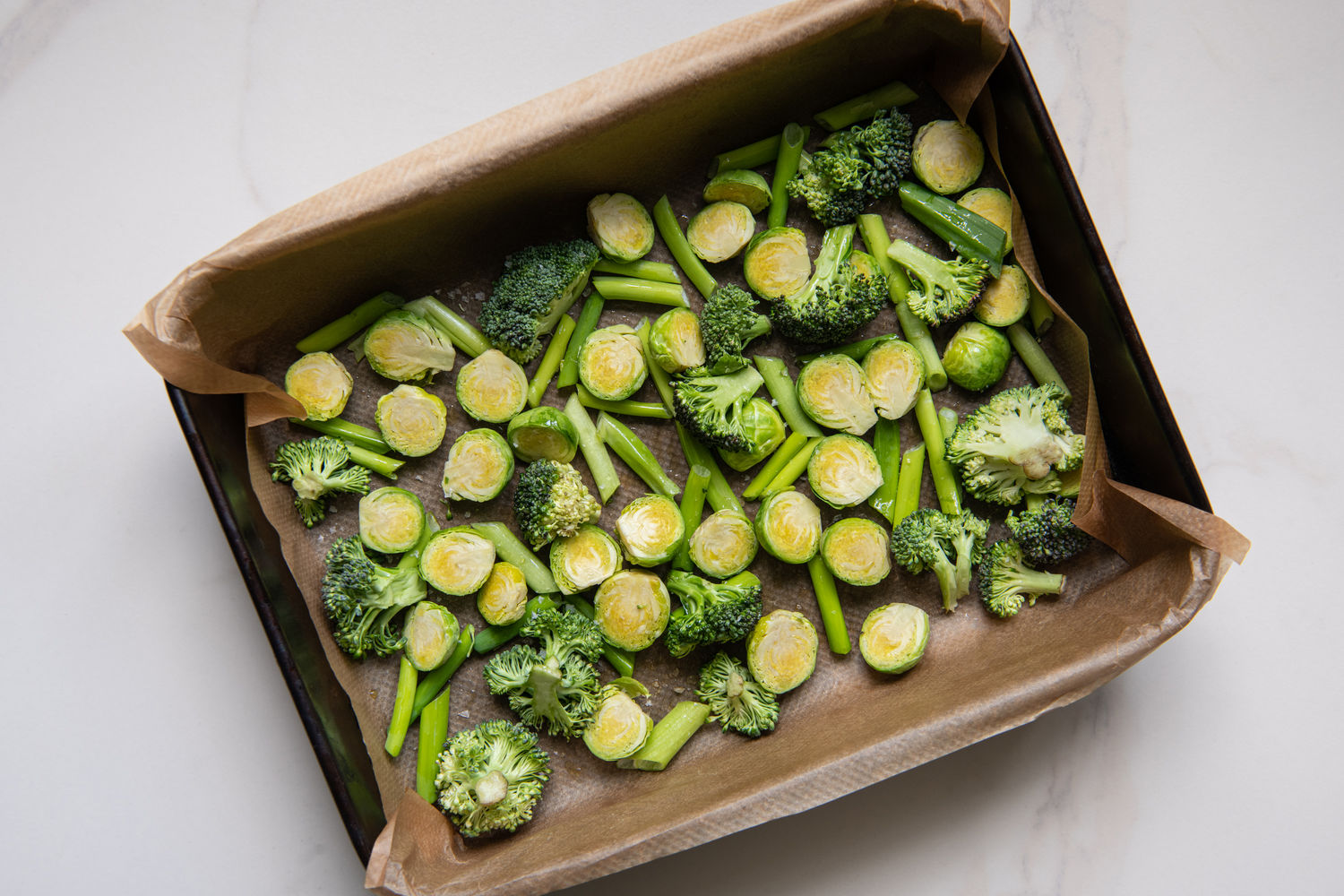 One Sheet Miso Salmon with Broccoli and Brussels Sprouts