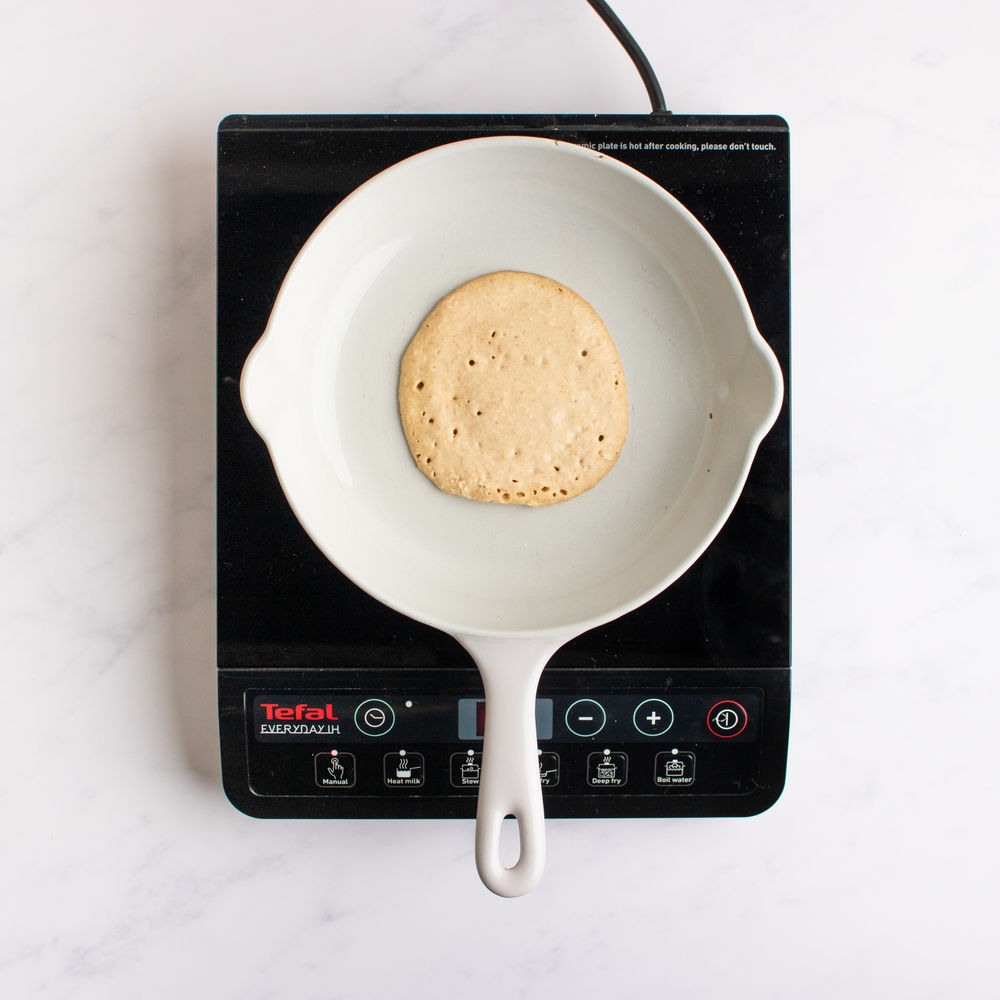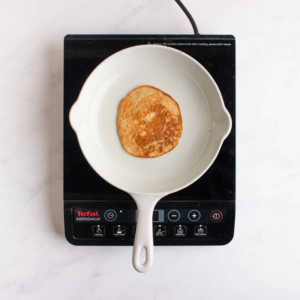 When you see bubbles appear on the top, flip the pancake to cook on the other side until golden brown. Set aside and repeat with the remaining mixture. The bubbles will begin to appear at the edges, when they move closer to the centre it's time to flip.