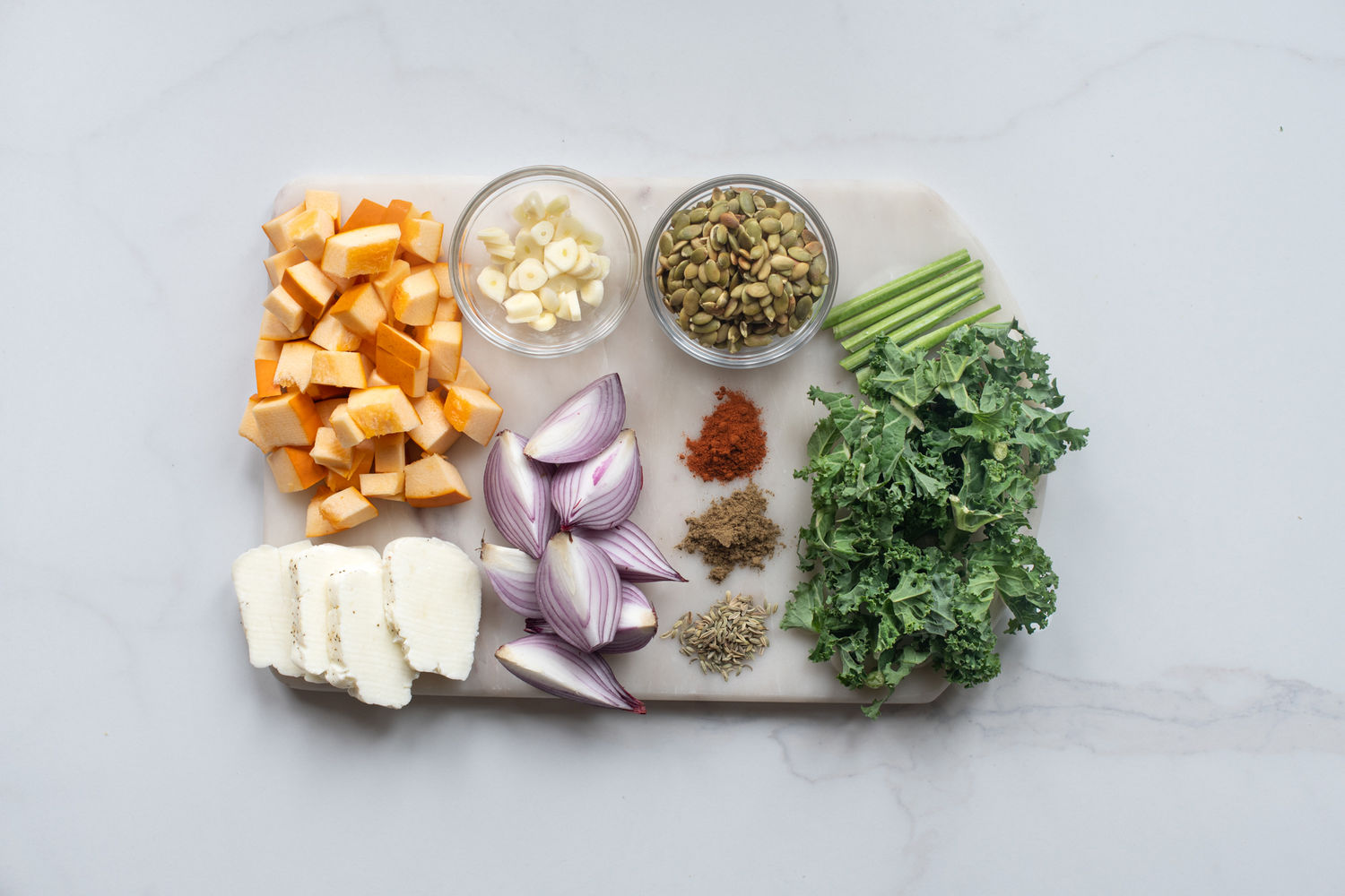 Pumpkin, Kale and Halloumi Traybake