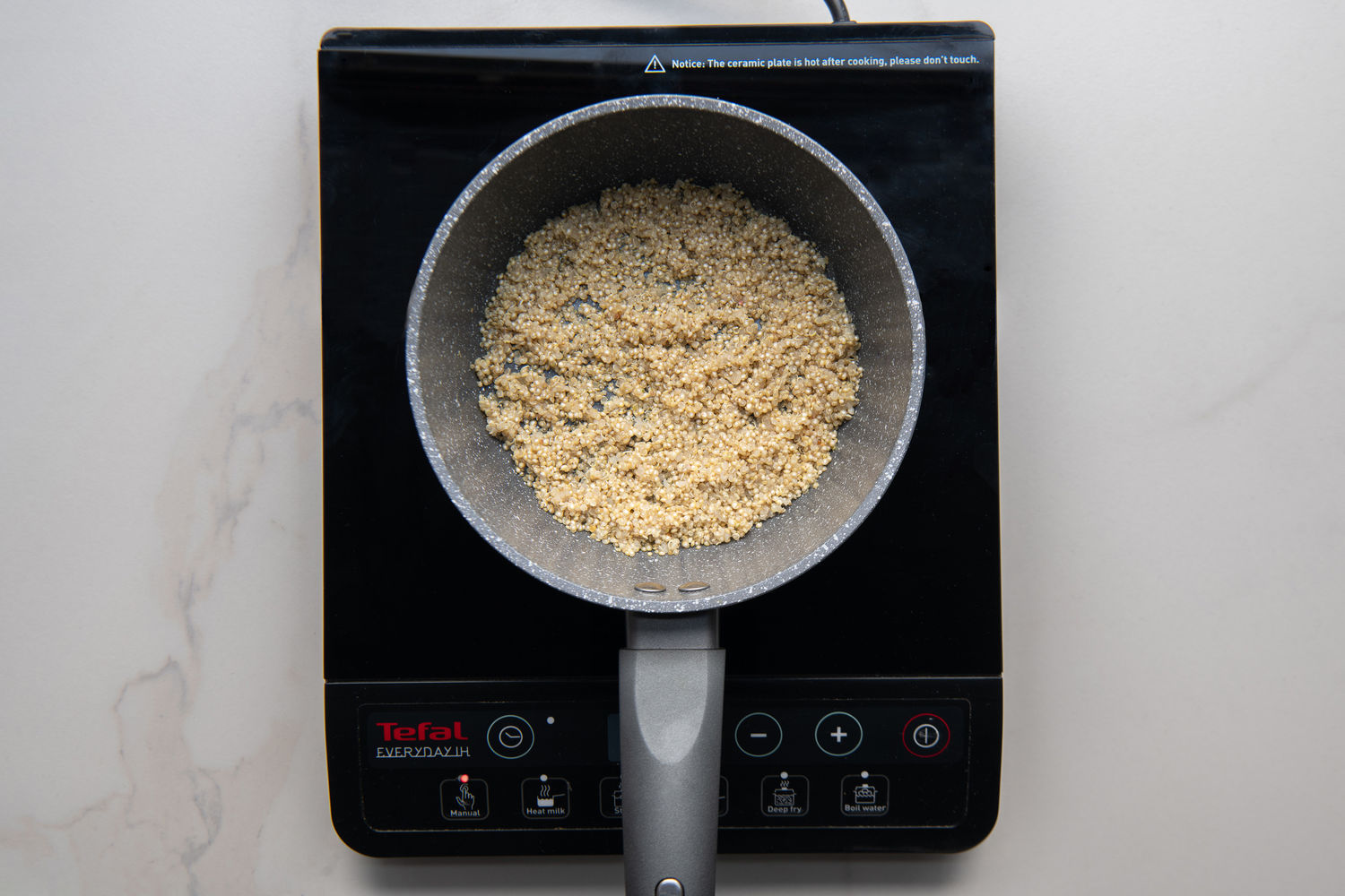 Place the quinoa and water into a saucepan. Cover, place over a medium heat, bring to a gentle simmer and cook for 7-8 minutes, until all of the water has been absorbed.