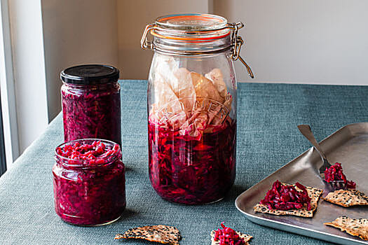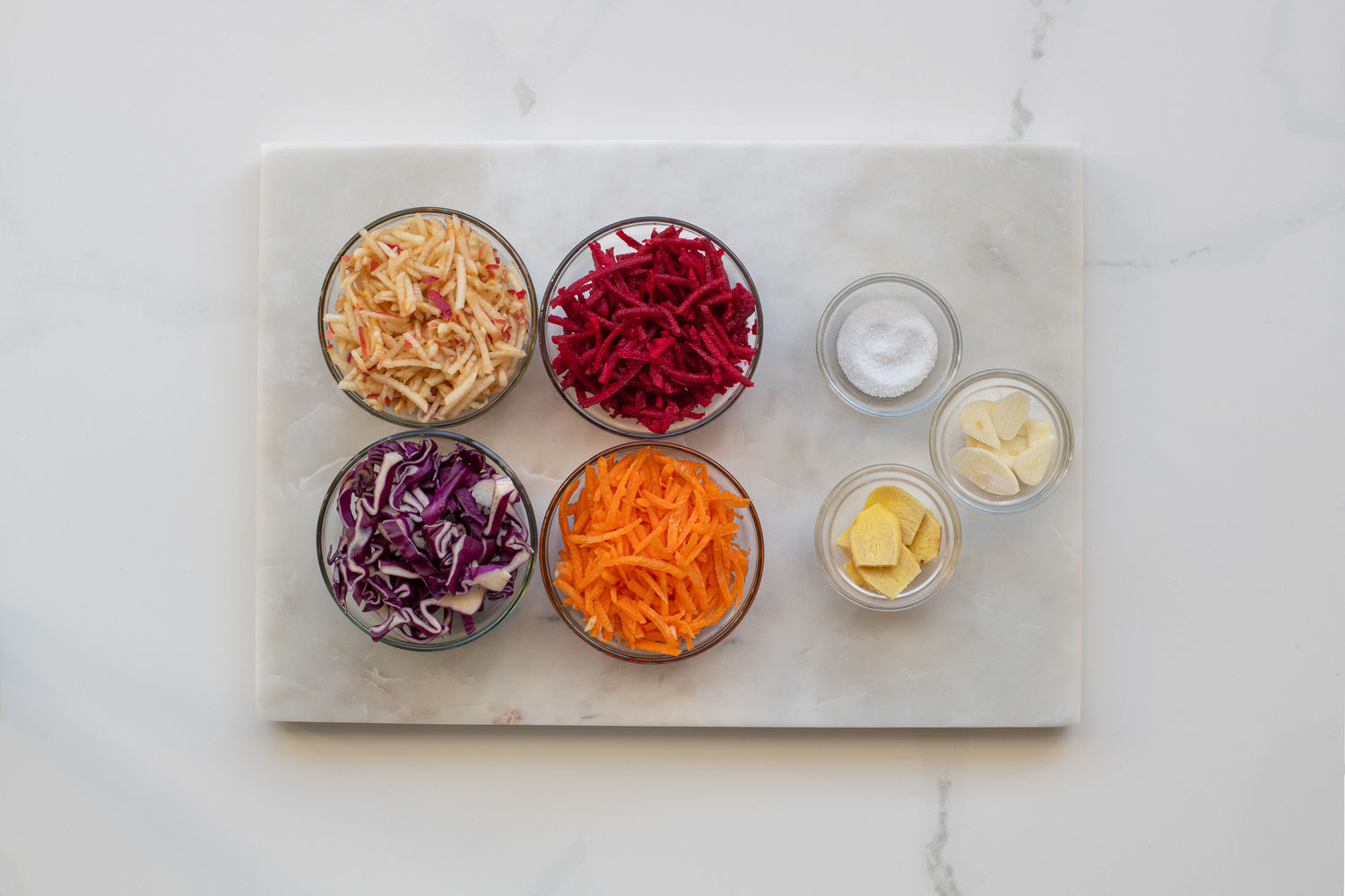 This punchy and colourful sauerkraut will liven up any salad bowl, sandwich or wrap. Even if you think you don't like beetroot you might enjoy this fe...rment - its deep, earthy flavour is brightened immeasurably when paired with sweet apple and zingy ginger. Read more This punchy and colourful sauerkraut will liven up any salad bowl, sandwich or wrap. Even if you think you don't like beetroot you might enjoy this ferment - its deep, earthy flavour is brightened immeasurably when paired with sweet apple and zingy ginger.