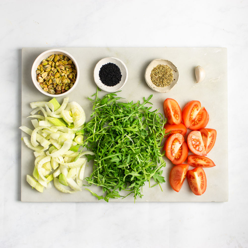 The bold flavours of fennel are mellowed by roasting and they combine perfectly with sweet tomatoes and pistachio to deliver an amazing flavourful mea...l. Read more The bold flavours of fennel are mellowed by roasting and they combine perfectly with sweet tomatoes and pistachio to deliver an amazing flavourful meal.