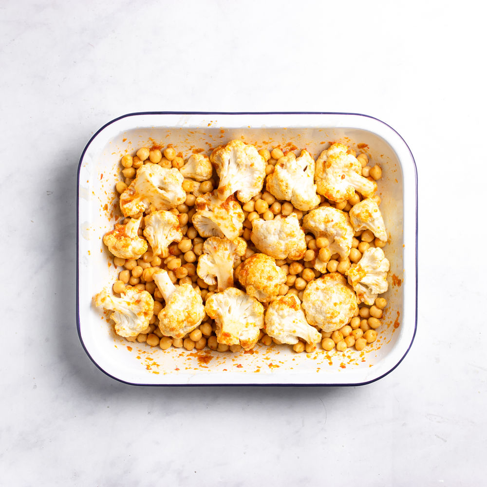 Roast Harissa Cauliflower and Tomato Traybake