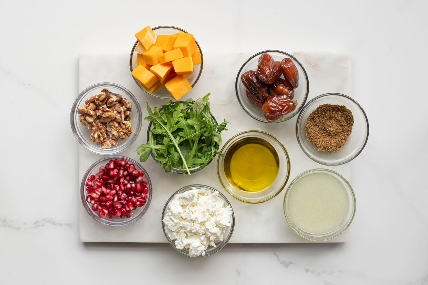 Roasted Butternut Squash Salad with Cumin, Date, and Lemon Dressing