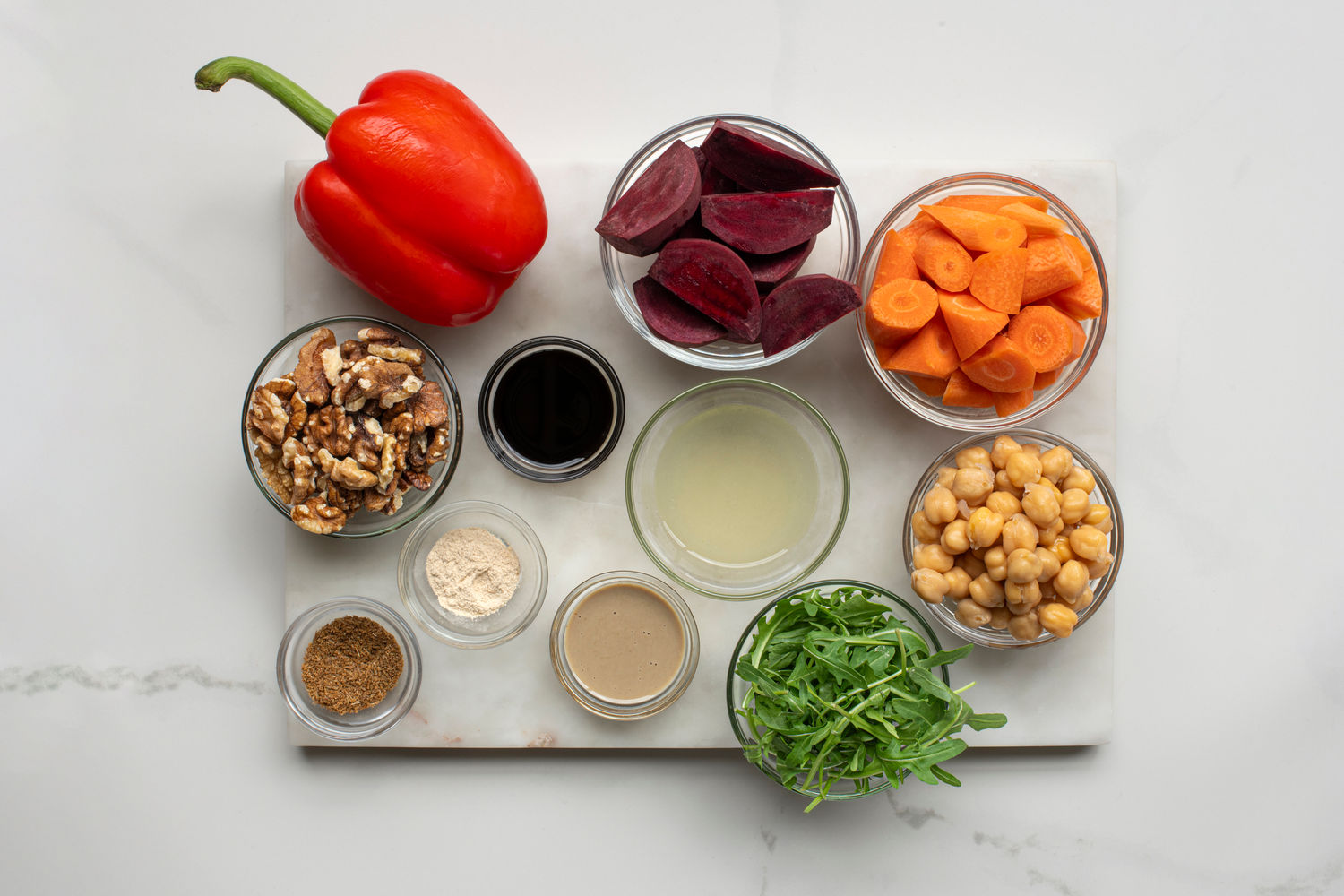 Roasted Carrot and Beetroot Salad with Walnut Red Pepper Sauce