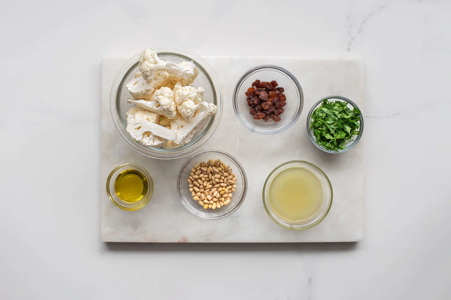 Roasted Cauliflower with Pine Nuts, Raisins, Lemon and Parsley