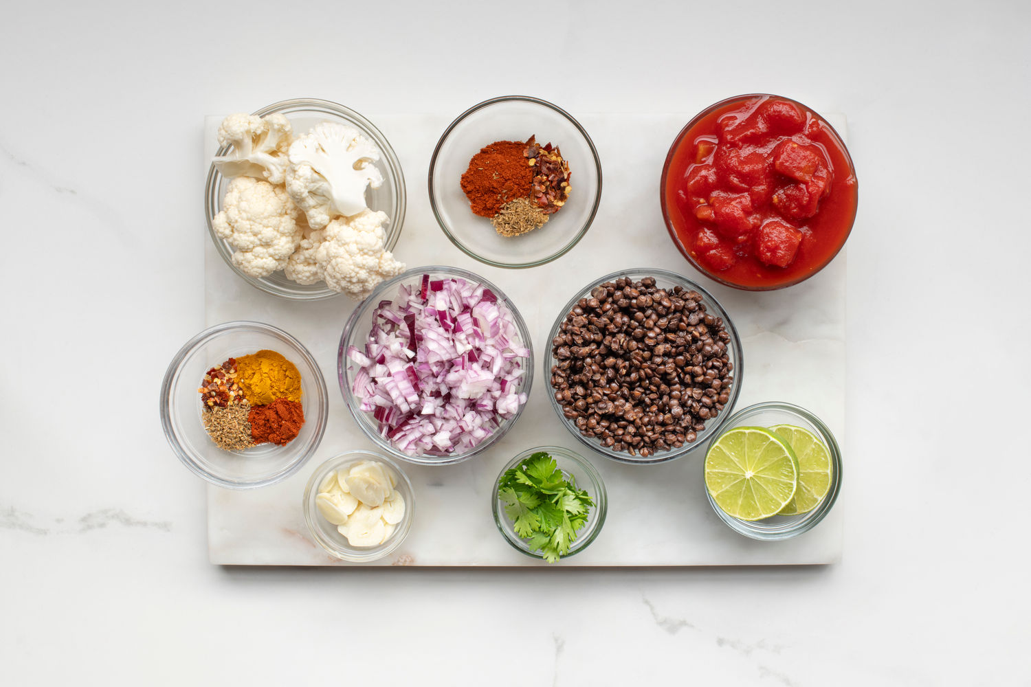 Top the lentil mixture with the cauliflower and serve with fresh herbs and a squeeze of lime.