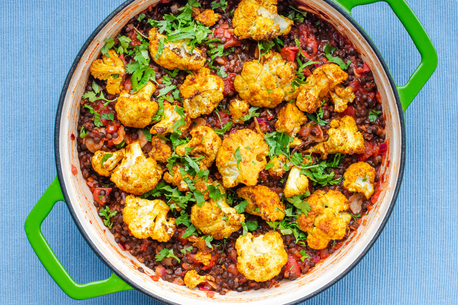 Roasted Turmeric Cauliflower with Smoky Puy Lentils