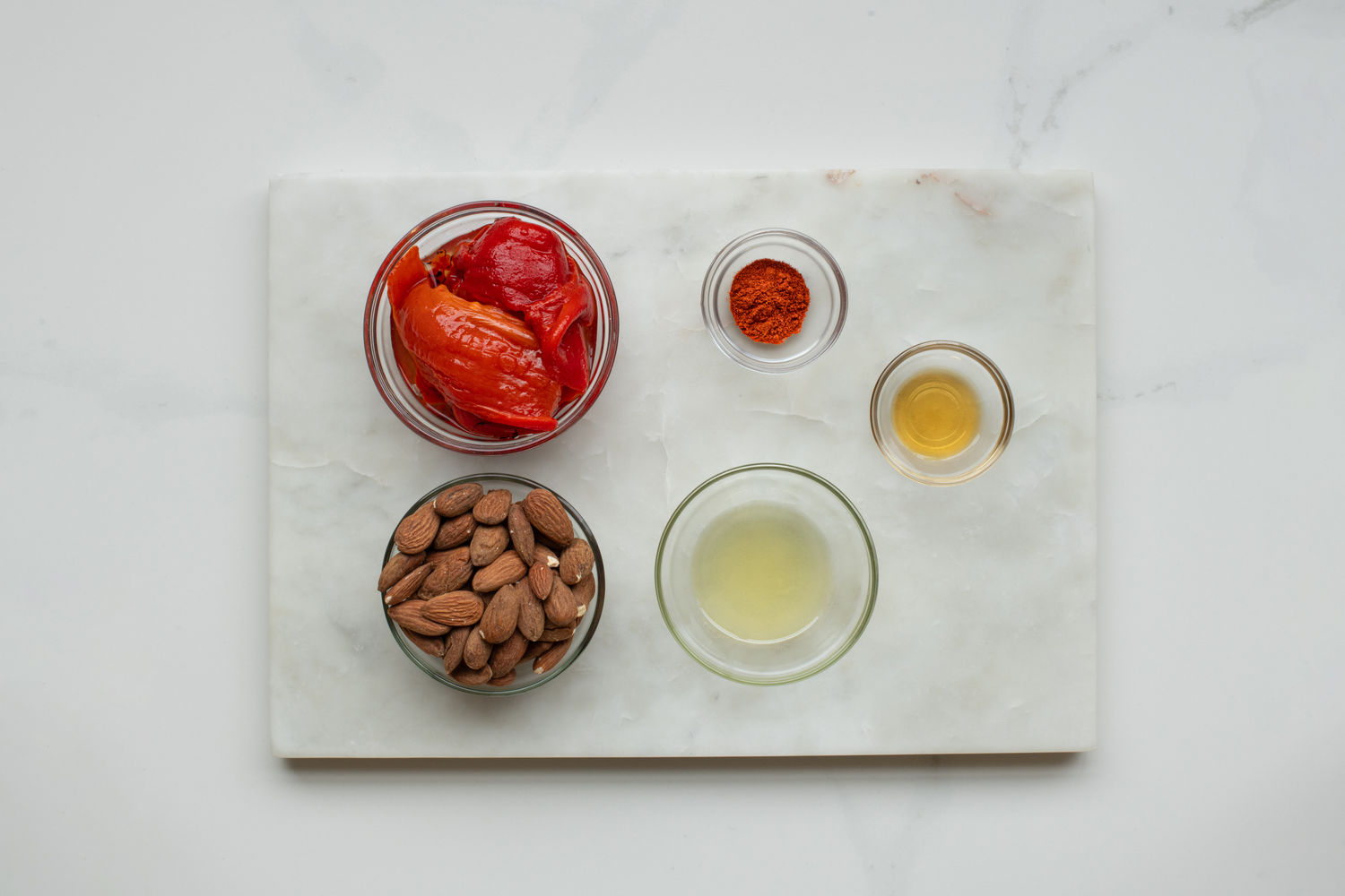 This is our take on Romesco sauce. It originated in Catalonia, where fishermen would make it to serve with the catch of the day. Smoky, rich, and vers...atile, it’s as easy to make as it is delicious. Use it to add rich flavour to traybakes, wraps, sandwiches, salads, or sides of roasted vegetables. Read more This is our take on Romesco sauce. It originated in Catalonia, where fishermen would make it to serve with the catch of the day. Smoky, rich, and versatile, it’s as easy to make as it is delicious. Use it to add rich flavour to traybakes, wraps, sandwiches, salads, or sides of roasted vegetables.