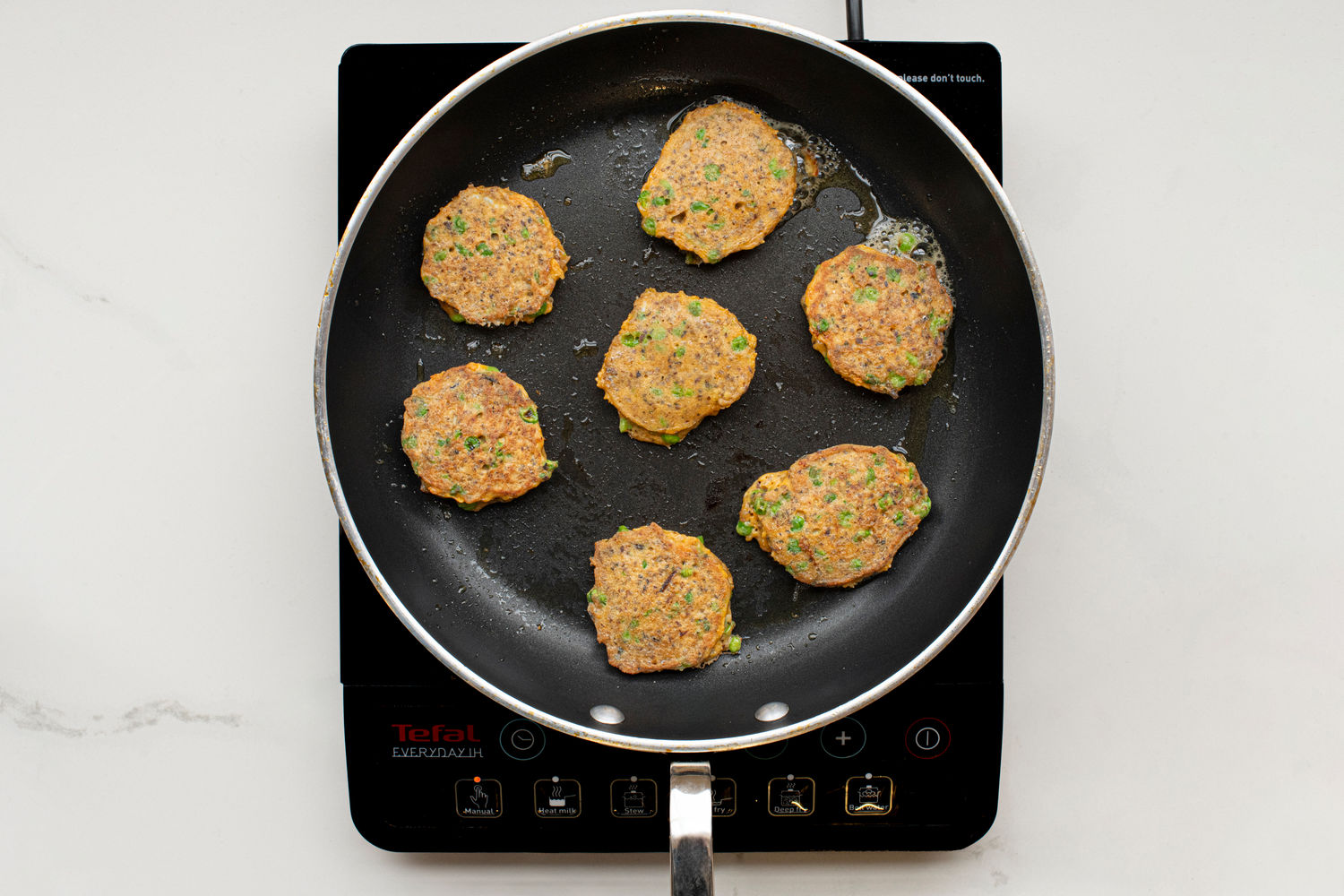Heat the olive oil in a frying pan over medium-high heat. Scoop into the pan, using about 2 tablespoons of batter for each fritter. Cook the patties for 3-4 minutes on each side, until golden brown and cooked through.