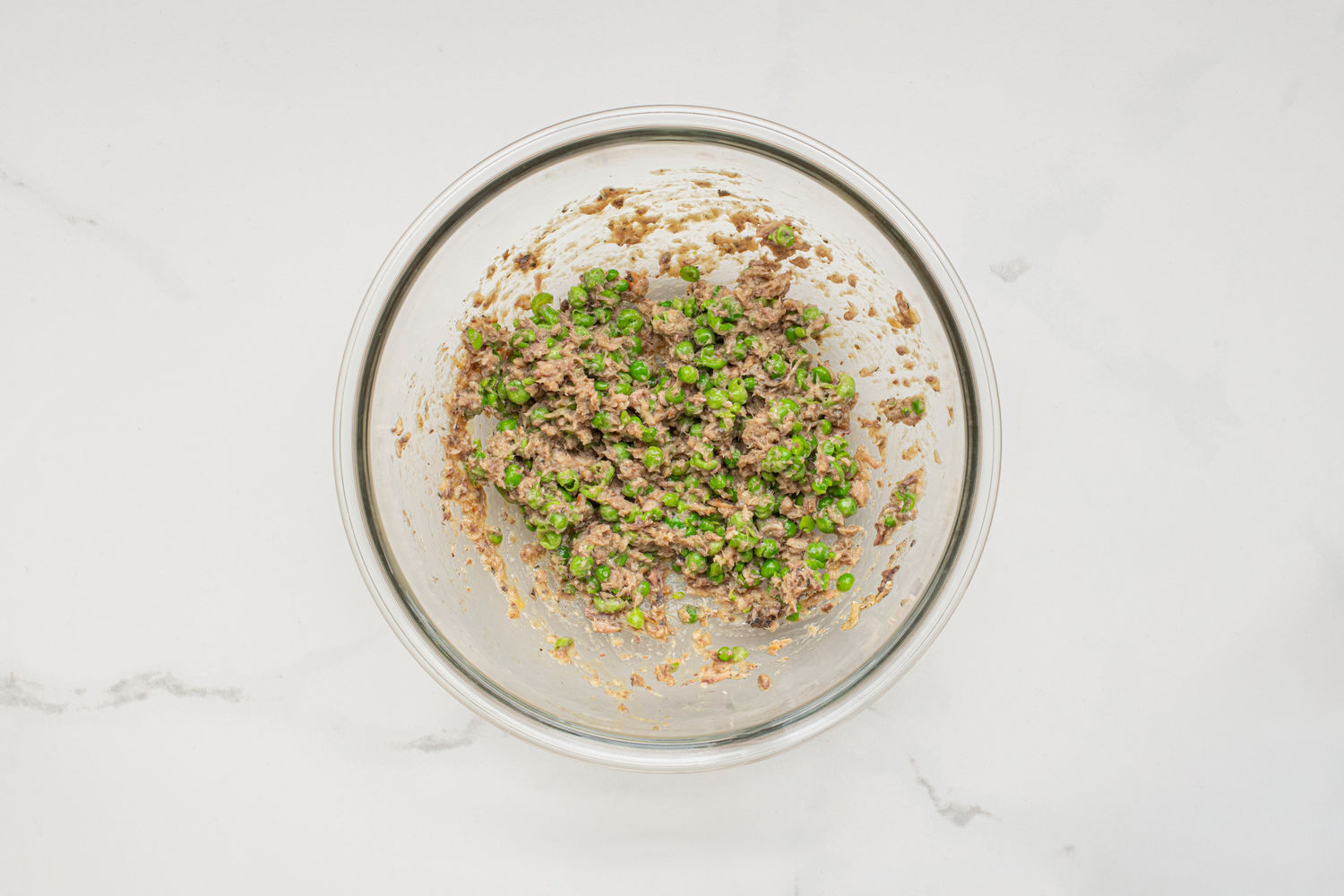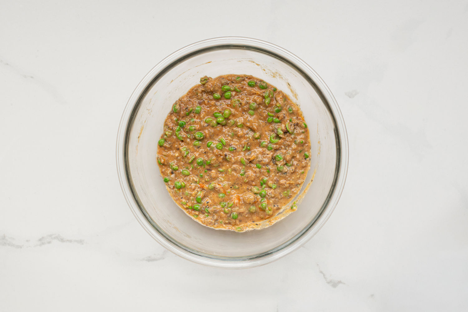 Add the peas and mash again.