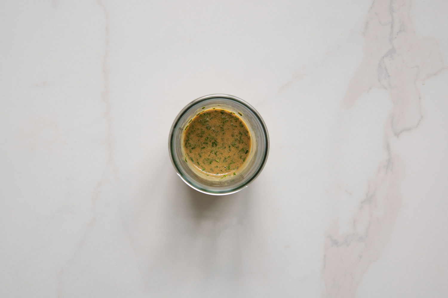 Make the dressing by adding the remaining oil, the vinegar, mustard, lemon juice, maple syrup, chives and seasoning in a jar and shake to combine fully. Taste and add more seasoning if necessary.