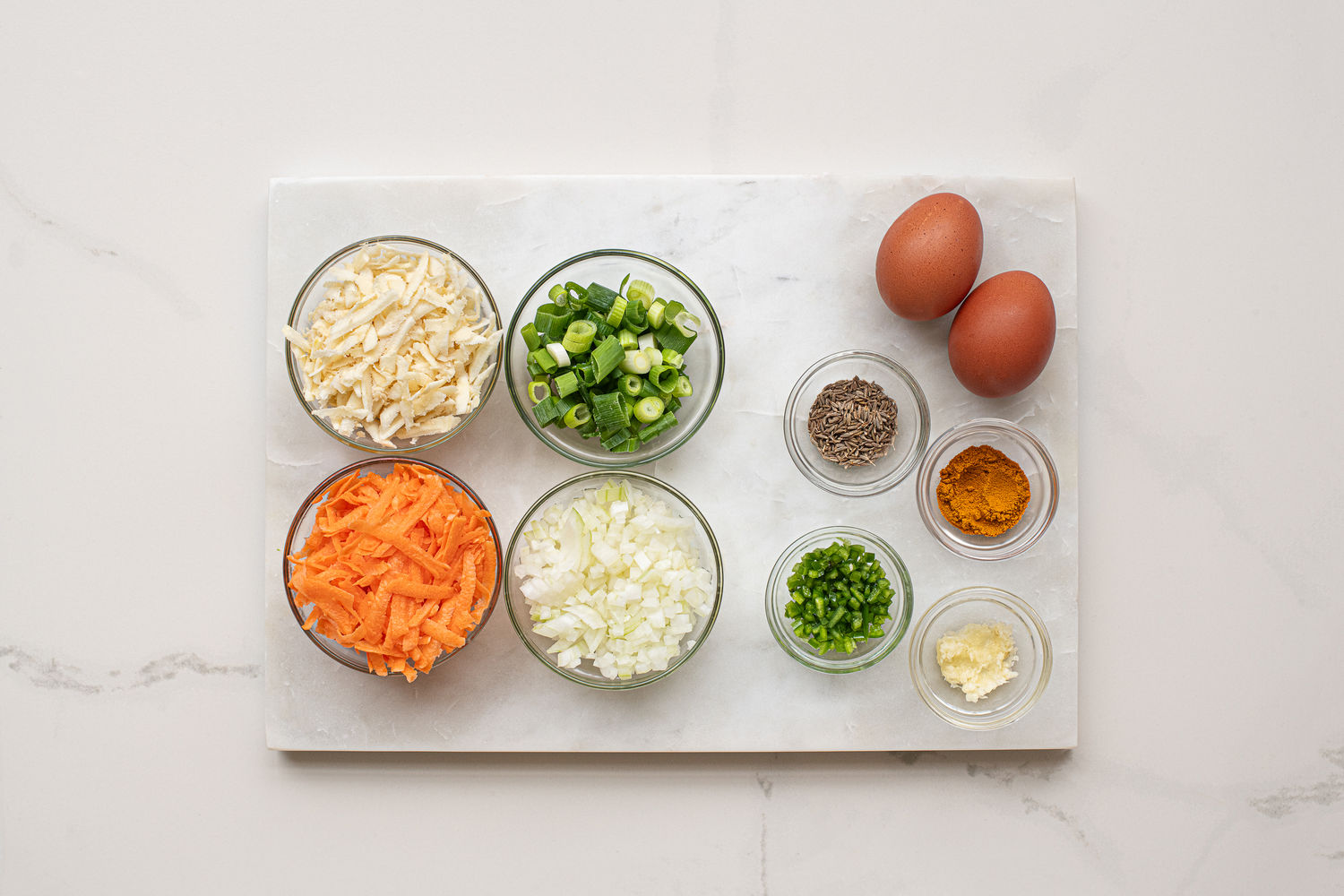 Parsnips and sweet potatoes not only taste delicious, they are easier to work with for hash browns than white potatoes. Because they naturally contain less starch, they don’t oxidise as easily, meaning you can make these in advance without running the risk of having your mix turn grey.