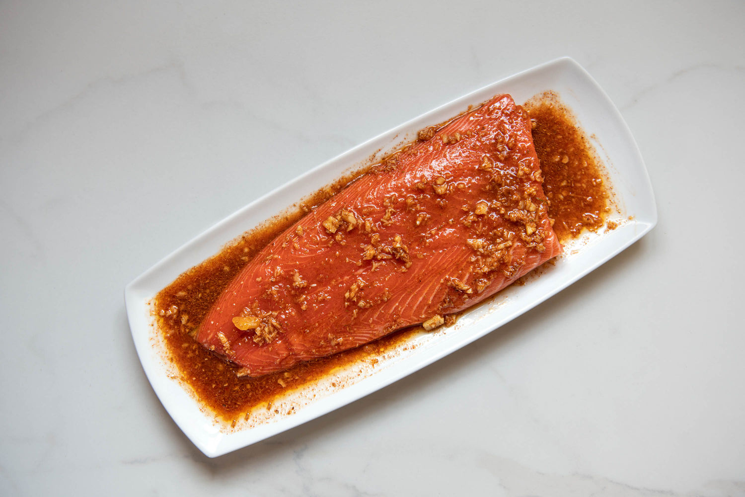 Spiced Salmon Tray with Brussels, Fennel and Dill