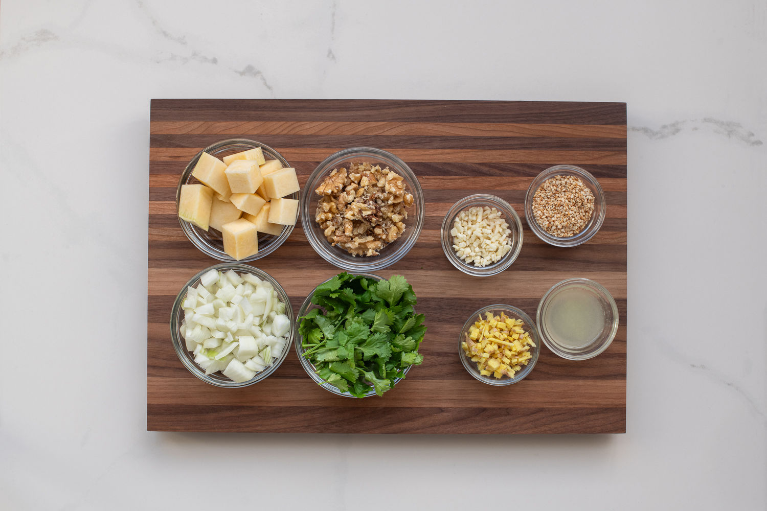 Spiced Swede Soup with Coriander, Lime and Sesame Dressing